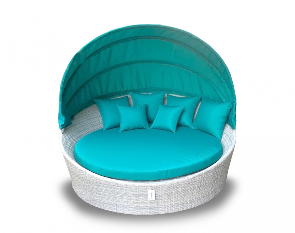 Лаунж-диван плетеный Tagliamento Shell-sunshade, белый, бирюза