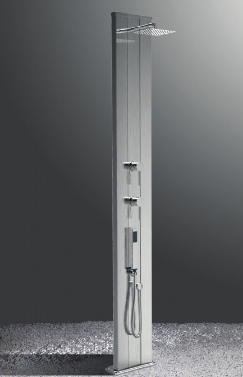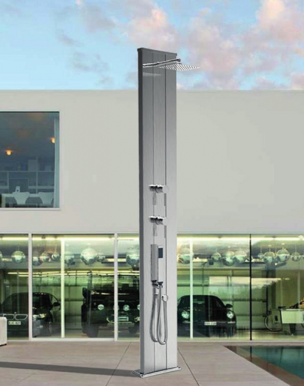Благодаря своему простому и минималистичному современному дизайну уличный душ Dada Sявляется жемчужиной в продукции компании Arkema. Солнечный душ Dada SD440 подходитдля установки на открытом воздухе в гостиницах, кемпингах, туристическихили пляжныхкурортах,илидля частного использования.Гармония и элегантность его формы делают его подходящим для любой обстановки. Душ оснащен гибким шлангом,благодаря которому удобство в использовании возрастает в несколько раз. Особенности: колонна выполнена изалюминияс порошковым антикоррозийным покрытием, которое обеспечивает долгий срок службы и устойчивость кразличным погодным воздействиям. Также к заказу доступен душ с отделкой из анодированной стали или с полосой из анодированной стали. Цены Вы можете уточнить у наших менеджеров; смеситель горячей воды из бака и холодной воды из источника. Материал - нержавеющая сталь; душевая насадка "тропический душ"; гибкий шланг; дивертор,с помощью которого выполняется перенаправление потока воды между душевой головкой и гибким шлангом; емкость для воды на 30л; нагрев воды от солнечных лучей; винты для крепления в комплекте; возможность крепления к песку или газону с помощью винта D125 и меламиновой плиты D180 (приобретаются отдельно); фильтр от известкового налета D150 в комплекте; размер входящей трубы для подключения воды 1,27 см; широкая палитра цветов. Скачать инструкцию по установке. Скачать техническую карту. Принцип работы максимально прост, что делает солнечный душ популярным атрибутом пляжныхкурортов. Вода, хранящаяся в корпусе душа, нагревается за счет солнца. Нагретая вода смешивается с холодной водой из источника постоянного водоснабжения (или из садового шланга). При помощи смесителя возможна регулировка потокагорячей и холодной воды до температуры комфорта. На зимний период воду из внутреннего бака и шлангов необходимо сливать!Характеристики