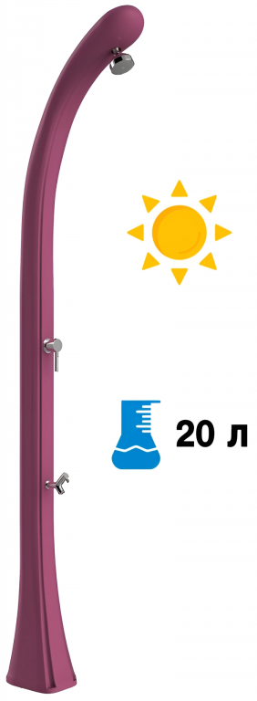 Уличный душ Happy One обладаетинновационным и оригинальным дизайном, которыйсочетает в себе стиль и функциональность, простоту и изысканность. В нижней части корпуса душа находится дополнительный кран, который удобно использовать для мытья ног. Солнечный душ Happy One подходитдля установки на открытом воздухе в гостиницах, кемпингах, туристическихили пляжных курортах, или для частного использования.Установка выполняется без проблем, простое подключение к любому садовому шлангу или постоянномуводоснабжению. Особенности: колонна выполнена изполиэтилена высокой плотности (ПНД), который обладает устойчивостью к ультрафиолетовым лучам, коррозии, соли и известняку; встроенный предохранительный клапан; смеситель горячей воды из бака и холодной воды из источника. Материал - нержавеющая сталь; душевая насадка; кран для мытья ног; ёмкость на 20л; нагрев воды от солнечных лучей; винты для крепления в комплекте; возможность крепления к песку или газону с помощью винта D125 и меламиновой плиты D180 (приобретаются отдельно); возможность антивандального крепления с помощью кронштейнаD120 (приобретается отдельно); устойчивость к УФ, соли и накипи; размер входящей трубы для подключения воды 1,27 см; широкая палитра цветов. Скачать инструкцию по установке. Скачать техническую карту. Принцип работы максимально прост, что делает солнечный душ популярным атрибутом пляжныхкурортов. Вода, хранящаяся в корпусе душа, нагревается за счет солнца. Нагретая вода смешивается с холодной водой из источника постоянного водоснабжения (или из садового шланга). При помощи смесителя возможна регулировка потокагорячей и холодной воды до температуры комфорта. На зимний период воду из внутреннего бака и шлангов необходимо сливать!Характеристики