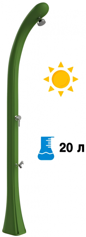 Уличный душ Happy One обладаетинновационным и оригинальным дизайном, которыйсочетает в себе стиль и функциональность, простоту и изысканность. В нижней части корпуса душа находится дополнительный кран, который удобно использовать для мытья ног. Солнечный душ Happy One подходитдля установки на открытом воздухе в гостиницах, кемпингах, туристическихили пляжных курортах, или для частного использования.Установка выполняется без проблем, простое подключение к любому садовому шлангу или постоянномуводоснабжению. Особенности: колонна выполнена изполиэтилена высокой плотности (ПНД), который обладает устойчивостью к ультрафиолетовым лучам, коррозии, соли и известняку; встроенный предохранительный клапан; смеситель горячей воды из бака и холодной воды из источника. Материал - нержавеющая сталь; душевая насадка; кран для мытья ног; ёмкость на 20л; нагрев воды от солнечных лучей; винты для крепления в комплекте; возможность крепления к песку или газону с помощью винта D125 и меламиновой плиты D180 (приобретаются отдельно); возможность антивандального крепления с помощью кронштейнаD120 (приобретается отдельно); устойчивость к УФ, соли и накипи; размер входящей трубы для подключения воды 1,27 см; широкая палитра цветов. Скачать инструкцию по установке. Скачать техническую карту. Принцип работы максимально прост, что делает солнечный душ популярным атрибутом пляжныхкурортов. Вода, хранящаяся в корпусе душа, нагревается за счет солнца. Нагретая вода смешивается с холодной водой из источника постоянного водоснабжения (или из садового шланга). При помощи смесителя возможна регулировка потокагорячей и холодной воды до температуры комфорта. На зимний период воду из внутреннего бака и шлангов необходимо сливать!Характеристики