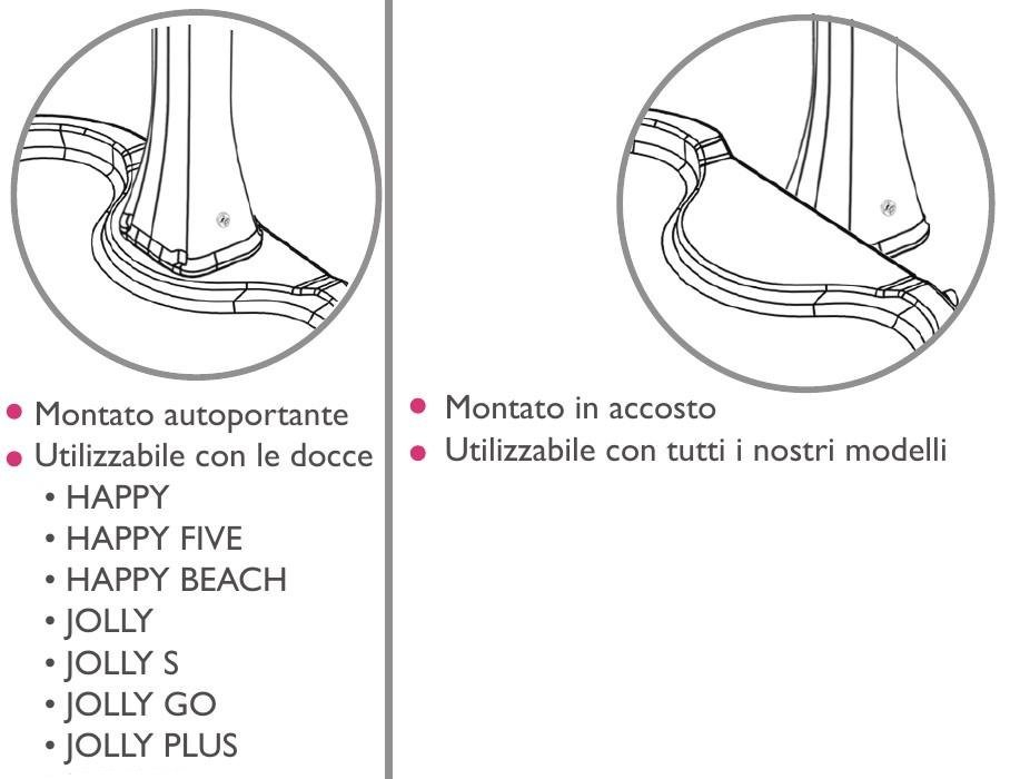 подходит для монтирования к душам: Happy, Happy Five, Happy Beach, Jolly, Jolly S, Jolly Go, Jolly Plus, Funny Yang и Funny Yin.
