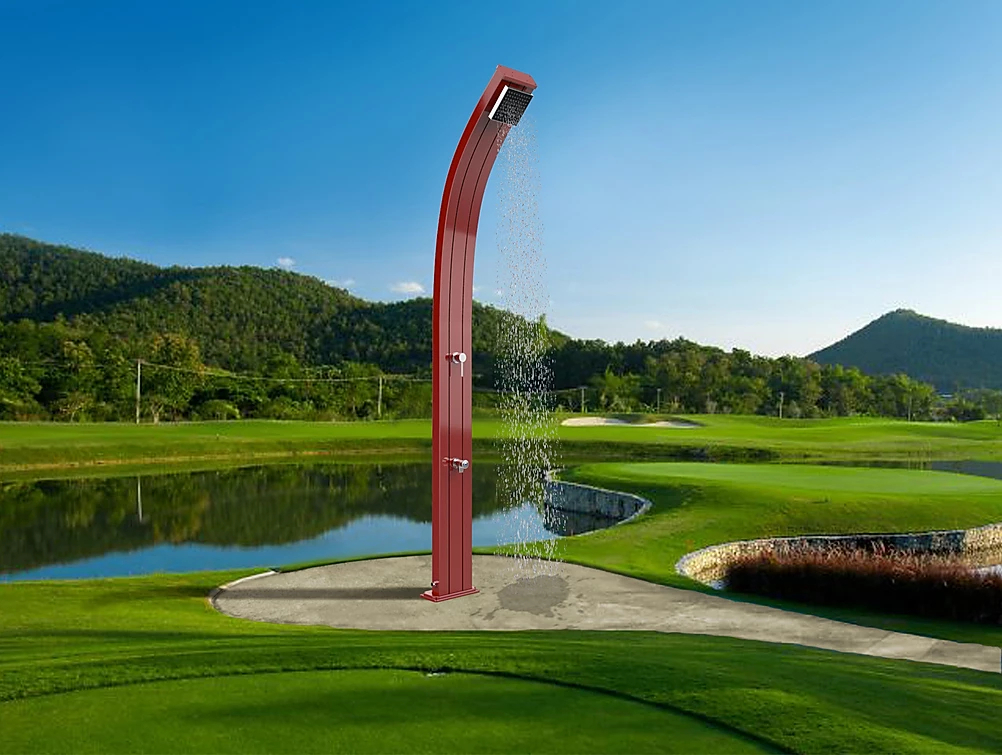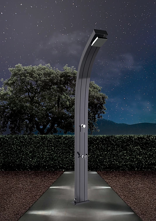 Вдохновленный дизайном коллекции Dada, но в уменьшенной версии, солнечный душ Spring A120-TL подходитдля установки на открытом воздухе в гостиницах, кемпингах, туристическихили пляжных курортах,илидля частного использования. Инновационный и оригинальный дизайн летнегодушаSpring A120-TL, выполненный со специальной отделкой и по технологиям последнего поколения, гарантирует смелую эстетику. Благодаря крупным вложениям, дизайнерскому решению и сложной системе окраски, Arkema создалауникальные уличные душив своем роде, с технологией покраски, используемой в автомобильном секторе.Его цвета - то, что отражает его название. Гармония и элегантность форм душа делают его подходящим для любой обстановки.В нижней части корпуса душа находится дополнительный кран, который удобно использовать для мытья ног. Особенности: колонна выполнена из алюминия с технологией жидкого окрашивания и антикоррозийной обработкой; смеситель горячей воды из бака и холодной воды из источника. Материал - нержавеющая сталь; душевая насадка "тропический душ"; кран для мытья ног; емкость для воды на 25л; нагрев воды от солнечных лучей; устойчивостьк ультрафиолетовым лучам, коррозии, соли и известняку; винты для крепления в комплекте; размер входящей трубы для подключения воды 1,27 см; возможность крепления к песку или газону с помощью винта D125 и меламиновой плиты D180 (приобретаются отдельно); чехол для душа D170 в комплекте; фильтр от известкового налета D150в комплекте; широкая палитра цветов: Standard - сатинированное золото (1200), жемчужный черный (7300), жемчужный белый (9400), изумрудный (6700), а также Special - розовое золото (1100), серебро (1300), сапфир (5600), рубин (3500). Цену за модель, выполненную в расцветке Special, уточняйте у наших менеджеров. Скачать инструкцию по установке. Скачать техническую карту. Принцип работы максимально прост, что делает солнечный душ популярным атрибутом пляжныхкурортов. Вода, хранящаяся в корпусе душа, нагревается за счет солнца. Нагретая вода смешивается с холодной водой из источника постоянного водоснабжения (или из садового шланга). При помощи смесителя возможна регулировка потокагорячей и холодной воды до температуры комфорта. На зимний период воду из внутреннего бака и шлангов необходимо сливать!Характеристики