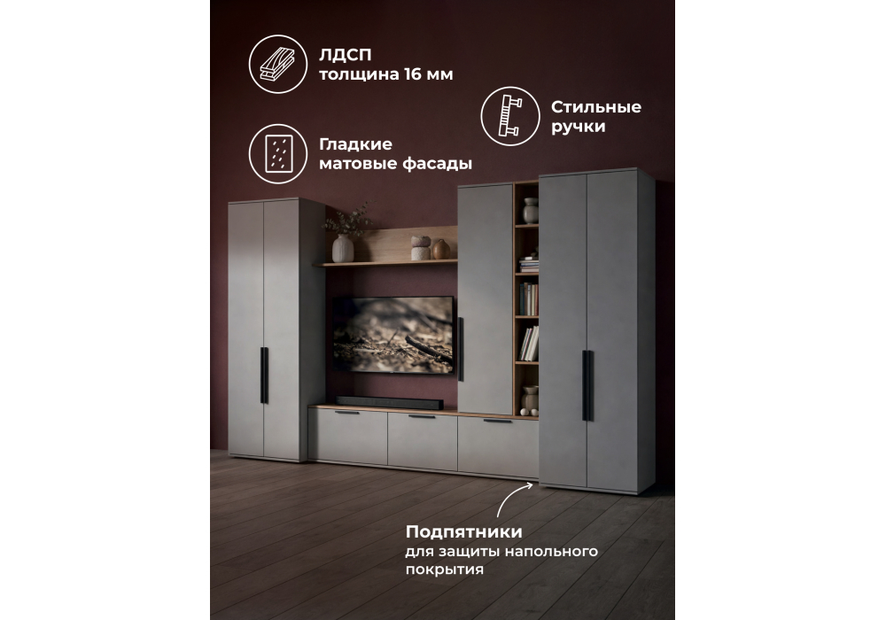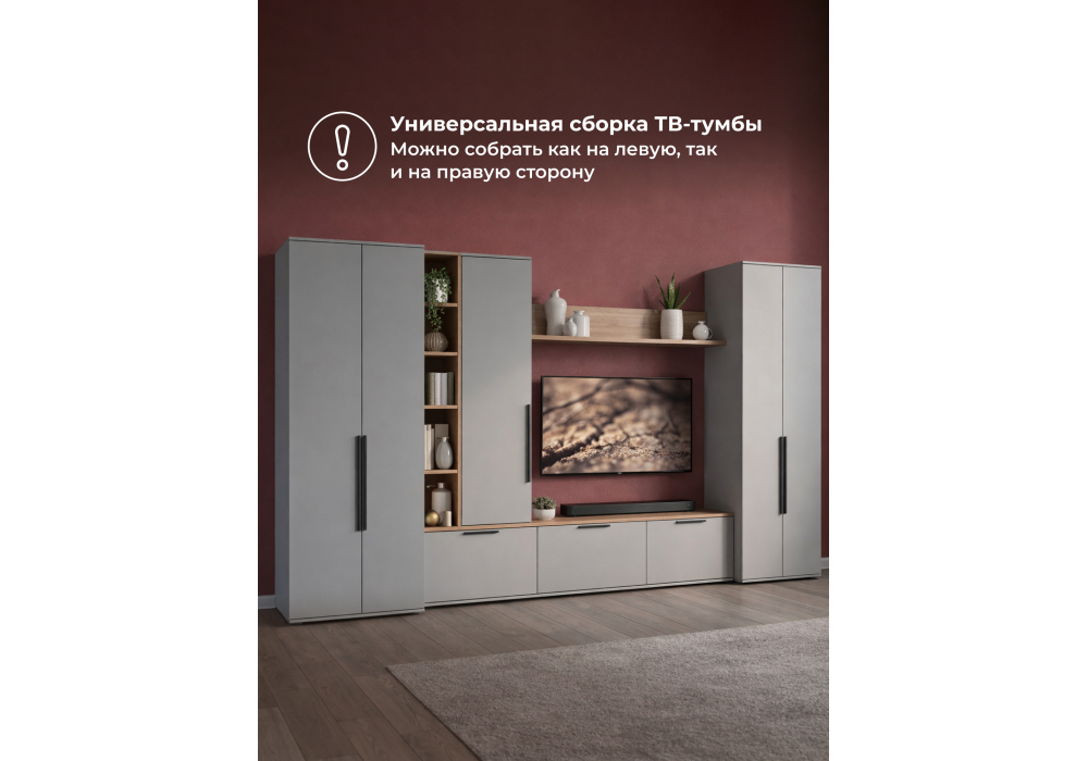 Вы можете купить Готовая гостиная Woodville Филеста шиншилла серая, дуб вотан комплектация 2 оптом в нашем магазине, предложим цену с оптовой скидкой.