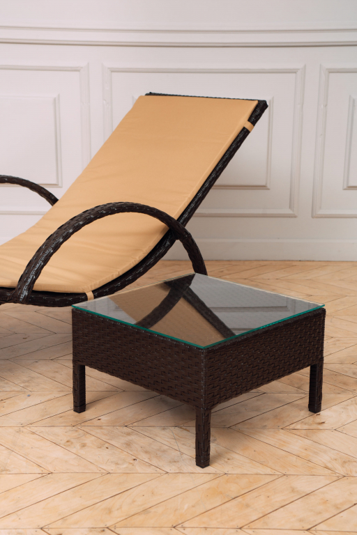 Небольшой плетеный столик из искусственного ротанга идеально сочитается с различными видами лежаков. Его компактные размеры идеально подойдут для уютного уголка с любимым креслом или шезлонгом, создавая атмосферу релаксации и комфорта. Минималистичный дизайн с чистыми, лаконичными линиями станет стильным акцентом в любом интерьере, подчеркивая его индивидуальность и современность. Производство позволяет изготовить его в совершенно любом цвете (в рамках палитры фабрики). Особенности: Металлический каркас выполнен из оцинкованной стали. Материал плетения: искусственный ротанг. Возможные цвета указаны в палитре на сайте Столешница выполнена из стекла, толщина 8 мм. Для уточнения всех возможных вариантов материала и цвета данного изделия обращайтесь к нашим менеджерам.Характеристики