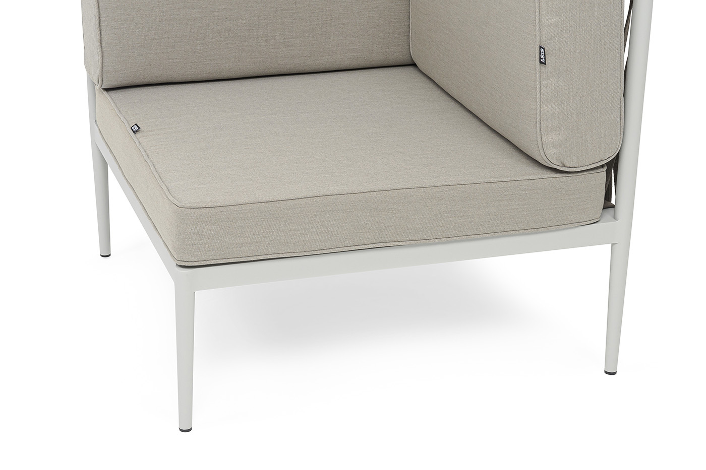 • "Касабланка" угловой модуль плетеный из роупа, каркас алюминий светло-серый (RAL7035) муар, роуп серо-коричневый 23мм, ткань бежевая 15052