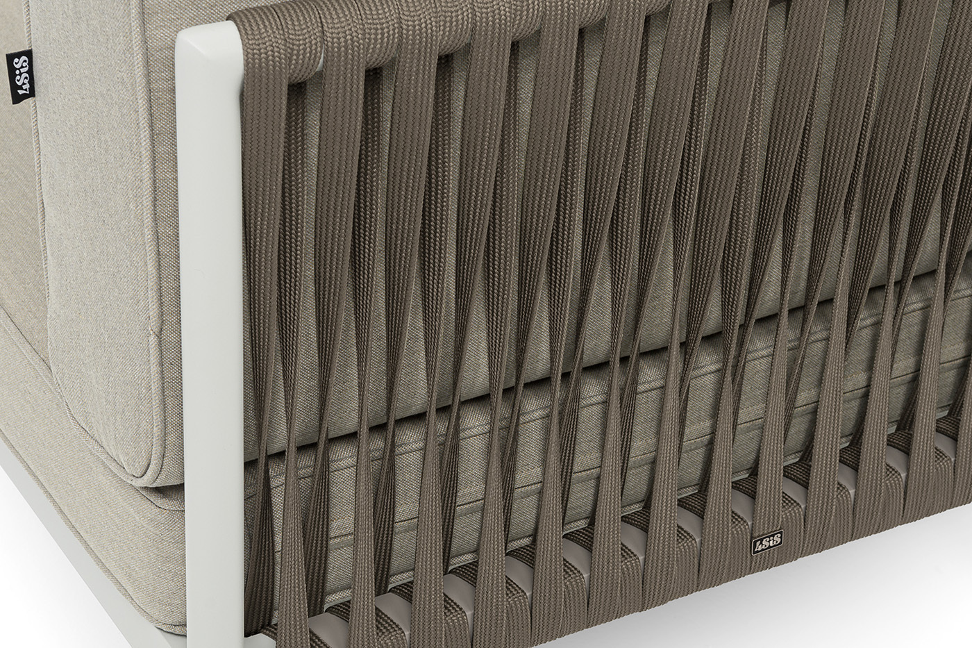"Касабланка" угловой модуль плетеный из роупа, каркас алюминий светло-серый (RAL7035) муар, роуп серо-коричневый 23мм, ткань бежевая 15052