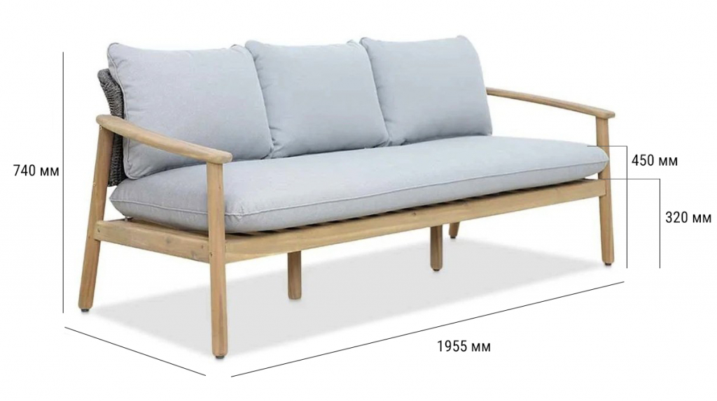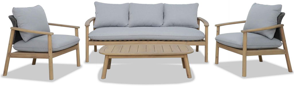 НЕ РЕКОМЕНДУЕТСЯ ДЛЯ КОММЕРЧЕСКОГО ИСПОЛЬЗОВАНИЯ Freeport - это воплощение современного стиля и элегантности для вашего сада. Коллекция, созданная из натуральной акации в сочетании с изысканным веревочным плетением и серыми подушками, привносит уют и роскошь в любое открытое пространство. В состав набора входят просторный трехместный диван, стильный кофейный стол и два удобных кресла - идеальный ансамбль для отдыха на свежем воздухе. Прочный деревянный каркас обеспечивает надежность и долговечность, а модный дизайн подчеркивает вкус и статус владельца. Freeport - это комфорт, стиль и природная эстетика на вашей веранде. Состав комплекта: Кресло с подушками, размер 818х771х740 мм - 2 шт. Диван трехместный с подушками, размер 1955х771х740 мм - 1 шт. Столик кофейный, размер: 1200х650х320 мм - 1 шт. Особенности: Материал - АКАЦИЯ, отделка песочный (Rose Grey). Веревочное плетение роуп PE 420 толщиной 6 мм на спинке излучает стиль в сочетании с деревянными поверхностями. Древесина, из которой изготовлена мебель, имеет сертификацию FSC (Forest Stewardship Council) - гарантия качества и происхождения древесины. Знак FSC - показатель того, что продукция происходит из леса, в котором ведется экологически и социально ответственное лесное хозяйство. Благодаря своей долговечности, прочности и устойчивости к вредителям эта древесина была создана для изготовления садовой мебели. Страна происхождения древесины: Вьетнам, Малайзия. Средняя плотность древесины: 550 кг/м3. Подушки в комплекте, плотность ткани 260 г/м2. Материалы устойчивы к УФ-излучению и другим погодным воздействиям. Цвет подушек - серый CD 527. Инструкция по уходу. Вся деревянная мебель должна обрабатываться специальным маслом или пропиткой минимум 1 раз в 6 месяцев (в условиях высокой влажности обработку следует проводить чаще). Для данной мебели не рекомендуются резкие температурные перепады. Мебель из дерева акации должна использоваться только под навесом. Дерево является натуральным материалом, поэтому любые трещины, неравномерные природные рисунки, различность оттенков ‐ являются естественным процессом, который вызван температурными изменениями или влажностью. Для уточнения всех возможных вариантов материала и цвета данного изделия обращайтесь к нашим менеджерам.Характеристики