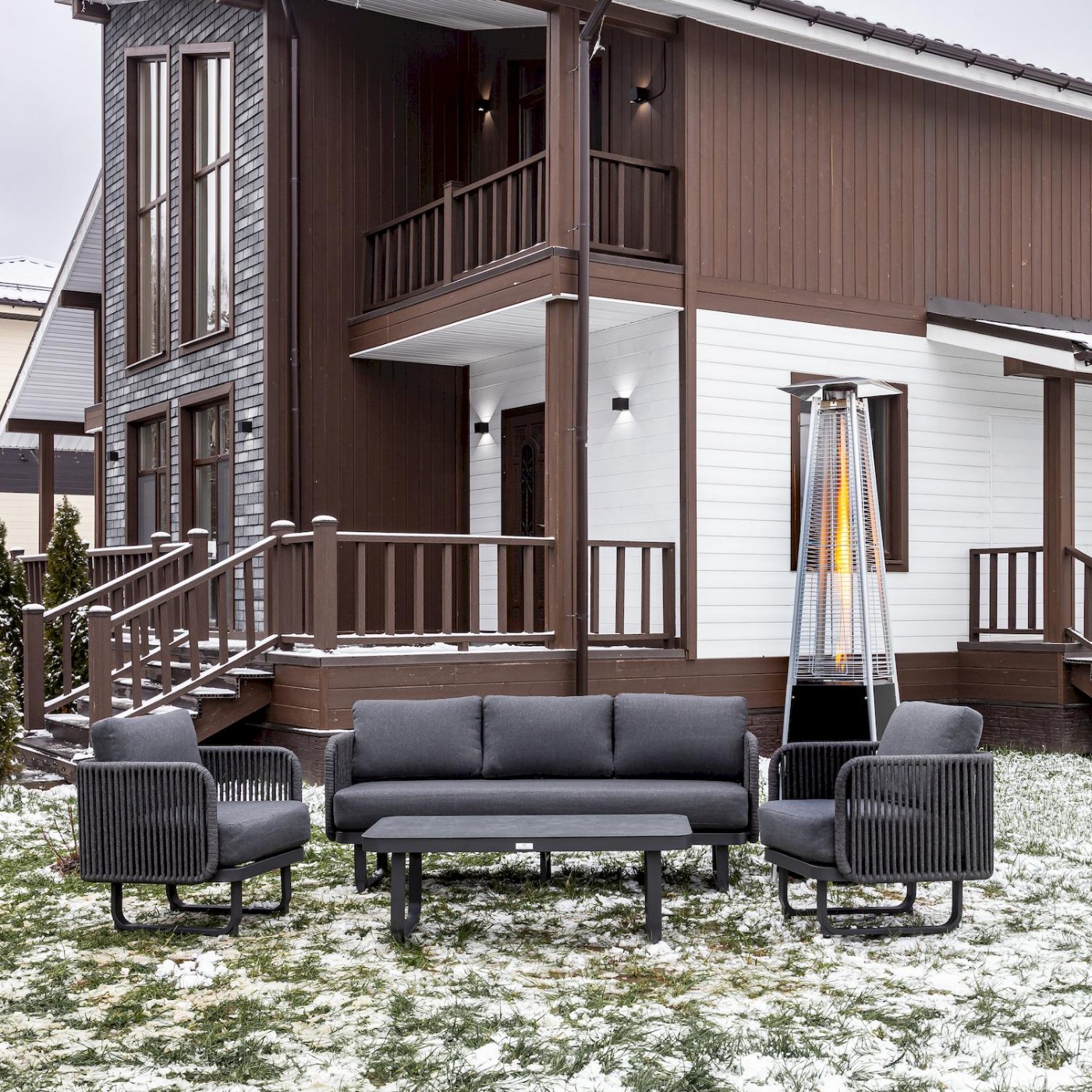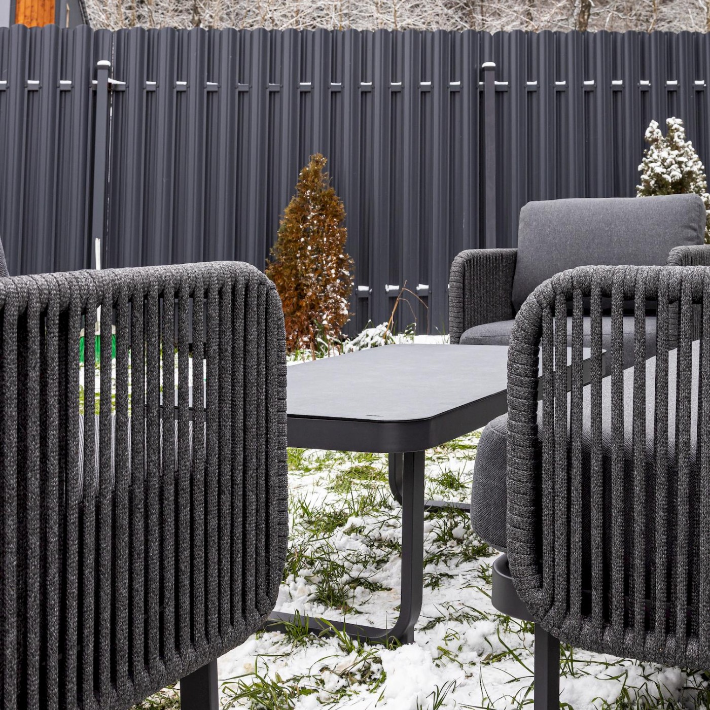 Комплектация и габариты: Диван - 187х68,5х67 см Стол - 120х60х40 см Кресло (2 шт.) - 67х68,5х67 см Цвет: Антрацит Цвет подушек: Темно-серый Цвет роупа: Темно-серый Материалы: Материал каркаса – алюминий, окрашенный порошковым методом Материал обивки - уличная веревка (роуп) Материл столешницы - закаленное стекло Материал чехлов на подушки: олефин Наполнитель подушек: пенополиуретан/ холлофайбер Страна производства: Китай Максимальная нагрузка на посадочное место: 150 кг Чехлы съемные – да Температурный режим - от -50॰C до +50॰C Сочетается с комплектами бренда ROYAL FAMILYХарактеристики