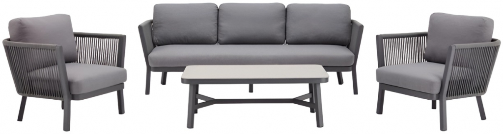 Комплект уличной мебели для отдыха Sofia обладает гармоничным стилем и разнообразными вариантами комбинирования, позволяющими наслаждаться жизнью на свежем воздухе. Коллекция, выполненная в сером цвете, состоит из разных оттенков сочетания фактуры металла, плетения из роупа и обивки, которые делают мебель намного более многослойной и легкой. С уличным комплектом Sofia сад, балкон или терраса преобразятся в уютное пространство для отдыха, где Вы сможете наслаждаться природой в стильном и комфортабельном окружении. Особенности: Каркас мебели выполнен из алюминия, который является одним из наиболее коррозионно-стойких металлов. Алюминий имеет защитное порошковое покрытие, которое предотвращает коррозию и делает этот материал подходящим для наружного применения. Уникальное плетение из высококачественной водостойкой веревки (акрил) придает мебели утонченный вид, подчеркивая ее современный стиль. Обивка подушек выполнена из окрашенного погодостойкого акрила. Наполнитель подушек для сиденья в диване и креслах: поролон плотностью 25 кг/м3. Наполнитель подушек для спинки: 100% полиэстер дакрон. Столешница кофейного столика выполнена из сланцевого закаленного стекла. Все материалы устойчивы к УФ-излучению и другим погодным воздействиям. Состав комплекта: Кресло лаунж с подушками (арт. TAG/10985), размер: 915х815х705 мм - 2 шт. Диван 3-х местный с подушками (арт. TAG/10982), размер: 2240х815х700 мм - 1 шт. Кофейный столик (арт. TAG/10986), размер: 1200х750х425 мм - 1 шт. Открыть палитру материалов. Открыть инструкцию по уходу. Для уточнения всех возможных вариантов материала и цвета данного изделия обращайтесь к нашим менеджерам.Характеристики