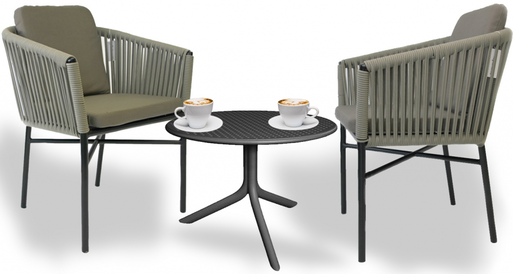 Комплект Step + Step Mini Palermo состоит из круглого стола и двух кресел. Круглый пластиковый стол Step + Step Mini выполнен из стекловолокна, столешница имеет небольшие декоративные перфорации, которые также эффективно выполняют функцию дренажа. Вы легко можете сделать его как обеденным столом с высотой 765 мм, так и кофейным столиком высотой 400 мм. Обеденное кресло Palermo привлекает внимание и, несомненно, украсит любое открытое пространство. Уличное кресло с эргономичным и современным дизайном с алюминиевым каркасом, спинкой в плетении из роупа и акриловыми подушками для сиденья и спинки. Комплект Step + Step Mini Palermo подходит для открытой террасы бара, ресторана, отеля или небольшого частного зимнего сада. Состав комплекта: Стол пластиковый Step + Step Mini, размер: Ø605х400-765 мм - 1 шт. Кресло плетеное Palermo, размер: 580х600х760 мм - 2 шт. Открыть инструкцию по уходу.Характеристики