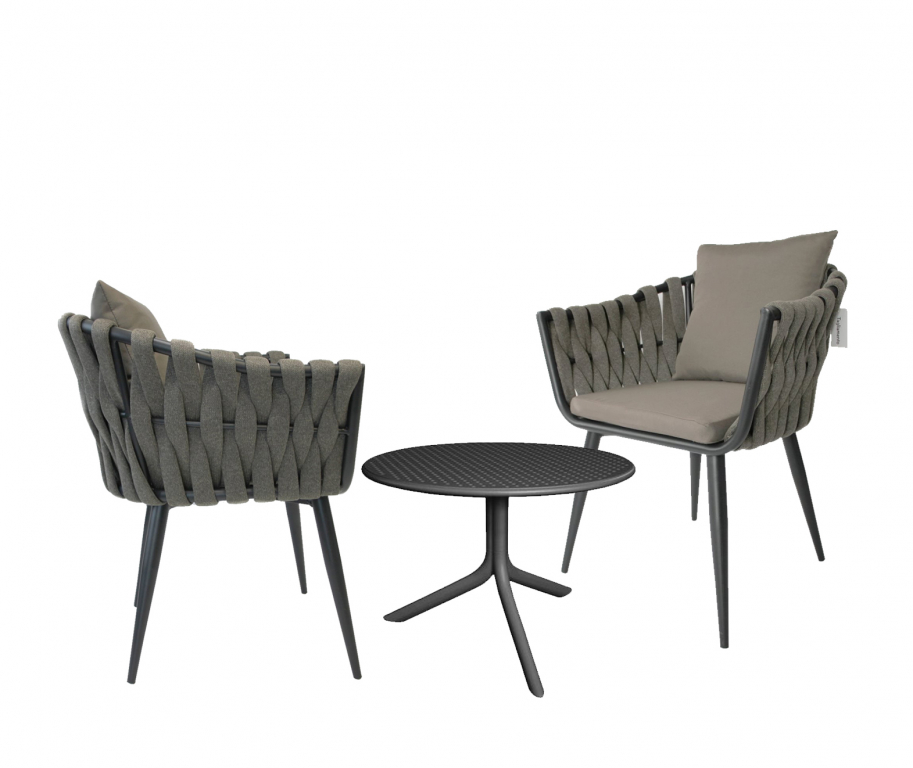 Комплект Step + Step Mini Verona состоит из круглого стола и двух кресел. Круглый пластиковый стол Step + Step Mini выполнен из стекловолокна, столешница имеет небольшие декоративные перфорации, которые также эффективно выполняют функцию дренажа. Вы легко можете сделать его как обеденным столом с высотой 765 мм, так и кофейным столиком высотой 400 мм. Обеденное кресло Verona привлекает внимание и, несомненно, украсит любое открытое пространство. Уличное кресло с эргономичным и современным дизайном с алюминиевым каркасом, спинкой в плетении из роупа и акриловыми подушками для сиденья и спинки. Комплект Step + Step Mini Verona подходит для открытой террасы бара, ресторана, отеля или небольшого частного зимнего сада. Состав комплекта: Стол пластиковый Step + Step Mini, размер: Ø605х400-765 мм - 1 шт. Кресло плетеное Verona, размер: 670х600х770 мм - 2 шт. Открыть инструкцию по уходу.Характеристики