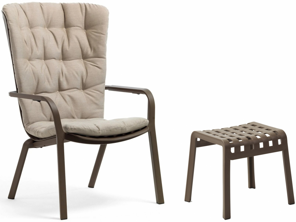 Дизайн: Raffaello Galiotto. Комплект для стильного расслабленияFolio Poggio, который состоит издвухпозиционногоуличного кресла Folio, мягкой подушки и небольшого табурета Poggio, который можно использовать как столик или как подставку для ног.Folio Poggio - это синоним перерывов и безделья, благодаря расслабляющей, широкой, обволакивающей конструкции, которая эргономично облегает тело. Комплект также идеально подходит для использования на открытых пространствах баров/ ресторанов и отелей для создания зоны отдыха для посетителей, для перерыва во время прогулки или в качестве идеального предлога для отдыха инаслаждения прекрасным видом. Мебель комплекта полностью изготовлена в Италии - от дизайна до изготовления пресс-форм и производства. Особенности: Каркас кресла и табурета выполнен из стеклопластика, преимуществами которого являются долговечность, устойчивость к воздействию коррозии и солнцу. Прочность структуры стеклопластика можно сравнитьс показателями стали, при этомизделия из стеклопластика в разы легче металлических. Благодаря простому и удобному запатентованномуNardiручному двухкнопочномумеханизму, спрятанному под подлокотником, спинку кресла можно отрегулировать в двух положениях с комфортом и легкостью. В комплекте удобнаястеганаяподушка, которая легко и незаметно крепитсяк спинке двумя ремнями на липучках. Чехол на подушке несъемный, ноее можно стирать при температуре 30°C. Подушка выполнена из 100% окрашенного в растворе акрила, светостойкость 7/8, водоотталкивающая, грязеотталкивающая и антиплесневая обработка. Наполнитель -пенополиуретан. Плотность 18 кг/м3. Кресло и табурет оснащены нескользящими ножками, поэтому их можно разместить возле бассейна. В комплект входит: Лаунж-кресло пластиковое Folio, размер:720х810-925х1130-1065 мм - 1 шт. Подушка для кресла Folio, размер:1265х860х70 мм - 1 шт. Табурет пластиковый Poggio, размер:490х415х440 мм - 1 шт. Данные производителя об упаковке: Кресло: картонная упаковка, размер: 1260х1050х750 мм, объем:0.992 м³, количество в упаковке: 4 шт. Подушка:картонная упаковка, размер: 860х670х135 мм, объем: 0.078м³, количество в упаковке: 1 шт. Табурет: картонная упаковка: размер:565х560х560 мм, объем:0.177 м³, количество в упаковке: 4 шт. Открыть технические характеристики кресла. Открыть технические характеристики подушки. Открытьтехнические характеристики табурета. Для уточнения всех возможных вариантов материала и цвета данного изделия обращайтесь к нашим менеджерам.Характеристики