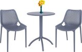 Комплект Octopus Air состоит из круглого стола и двух стульев. Круглый пластиковый стол Octopus со столешницей из погодостойкого пластика и каркасом из металла. Стул Air с перфорированными сиденьем изготавливается из полипропилена, упрочненного стекловолокном, полученным с использованием новейшего поколения технологий формования пластмасс под давлением.