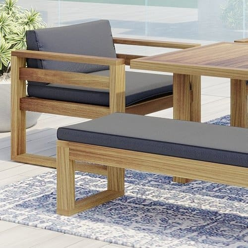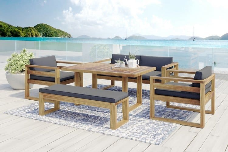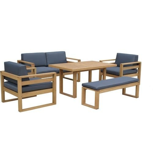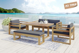 Прямые лаконичные линии мебели из коллекции Booka в сочетании теплого тона дерева и подушек в цвете темно-серый графит дают превосходные контрастные комплекты современной уличной мебели, которые по достоинству дополнят Вашу зону отдыха. Особенности: Материал - МАССИВ ТИКА. Тик - это лиственное дерево твердых пород, которое происходит из высокогорья. Никакая другая древесина не обладает такой исключительной прочностью и долговечностью, как тик. Его уникальная текстура и кожистый запах обусловлены высоким содержанием масла. Эти характеристики в сочетании с высокой плотностью древесины предотвращают коробление и гниение, позволяя мебели оставаться на открытом воздухе в любых условиях без ухода или защитных средств. Древесина тика сертифицирована INDO TLAS - SVLK и FSC. Знак FSC - показатель того, что продукция происходит из леса, в котором ведется экологически и социально ответственное лесное хозяйство. Страна происхождения древесины: Индонезия. Анодированная фурнитура из нержавеющей стали. Подушки в комплекте, ткань подушек - олефин, цвет подушек - темно-серый графит. Состав комплекта: Кресло Booka, размер 800х780х840 мм - 2 шт. Диван Booka 2-х местный, размер 1540х780х840 мм - 1 шт. Обеденный стол Booka, размер 1350х850х660 мм - 1 шт. Скамья Booka, размер 1330х400х420 мм - 1 шт. Открыть инструкцию по уходу.Характеристики
