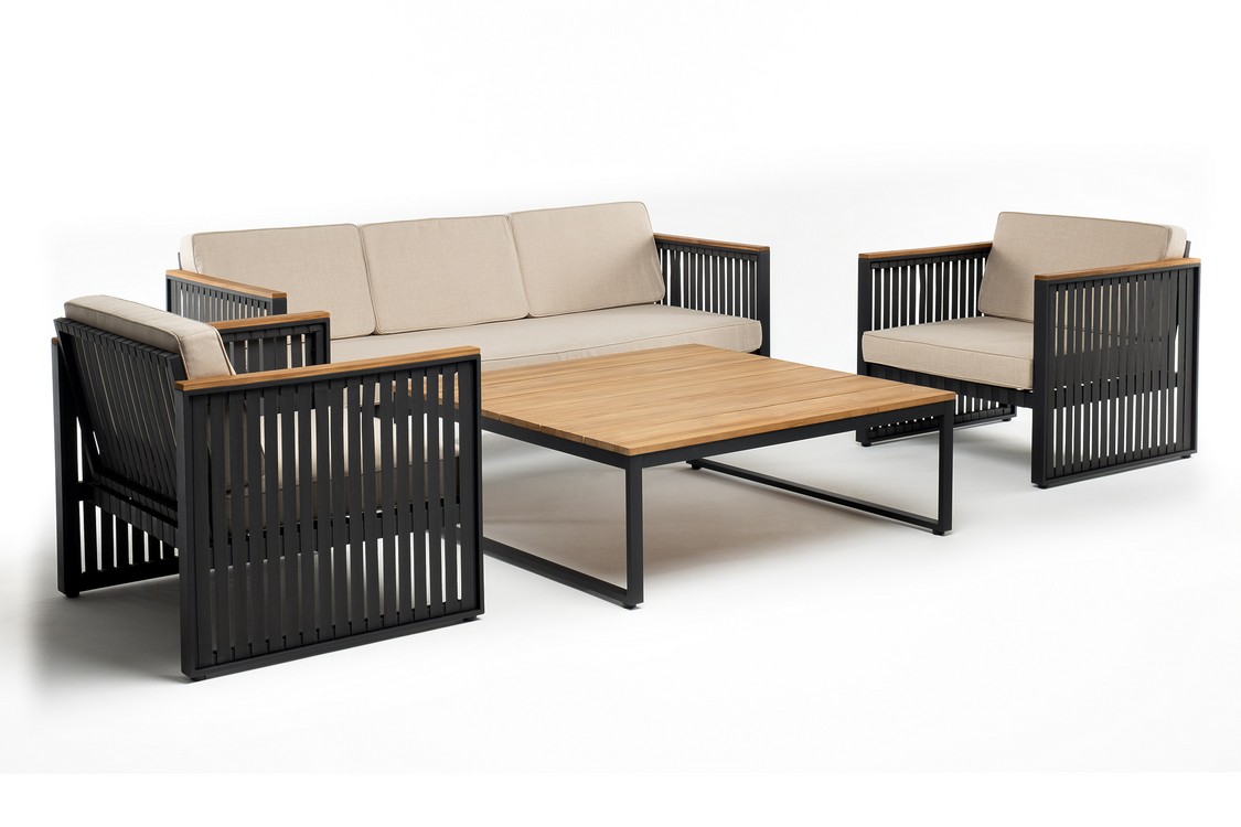 Каркас мебели изготовлен из прочного алюминия с порошковым покрытием, защищающим его от погодных условий и коррозии. Цвет каркаса – темно-серый графитМатериал – Тик 100%, что гарантирует экологичность и долговечность изделий.