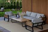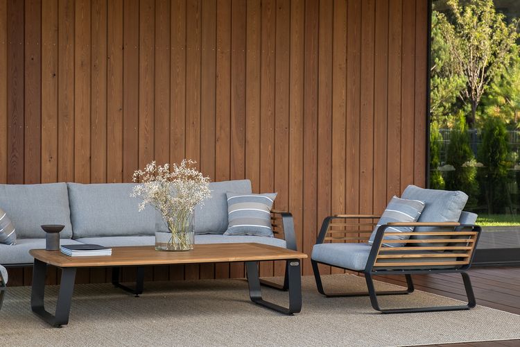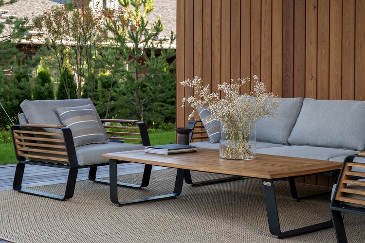 Cовременная уличная мебель.Материал — алюминий, с элементами натурального тика, 100%.