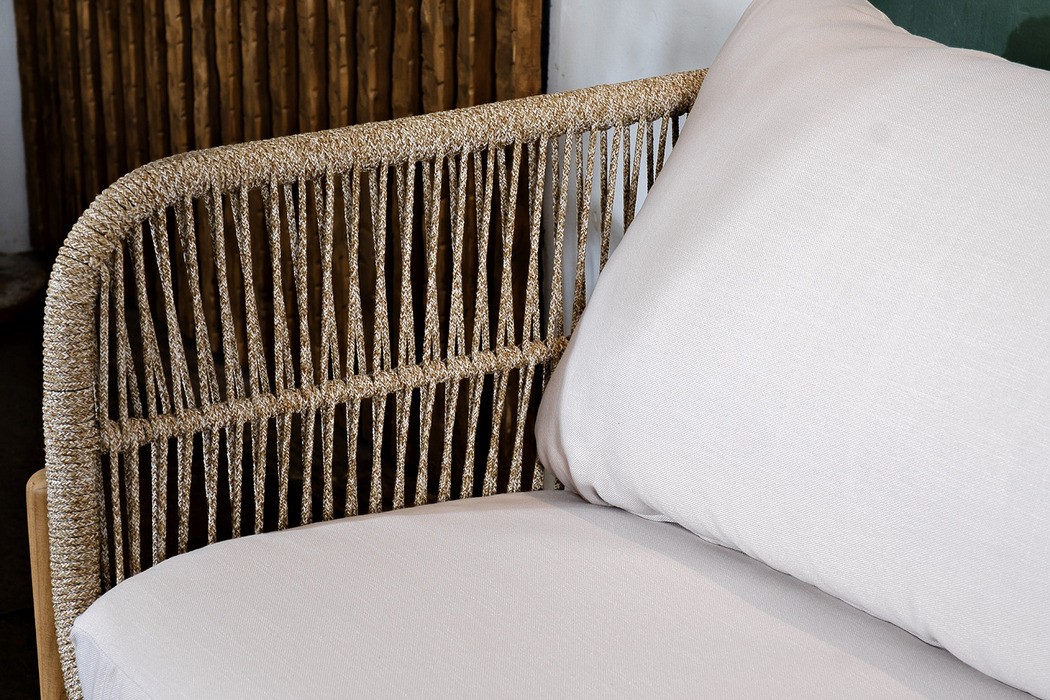 Яркая и невероятно стильная новинка сезона, объединяющая лучшие тенденции современного дизайна. Диванная группа ТАЛАРА сочетает в себе теплоту светлого тика, воздушность бежевого веревочного плетения роуп и роскошь столешницы из керамогранита Терраццо, создавая композицию в пастельных тонах, которая станет настоящим произведением искусства в вашем саду или на террасе.