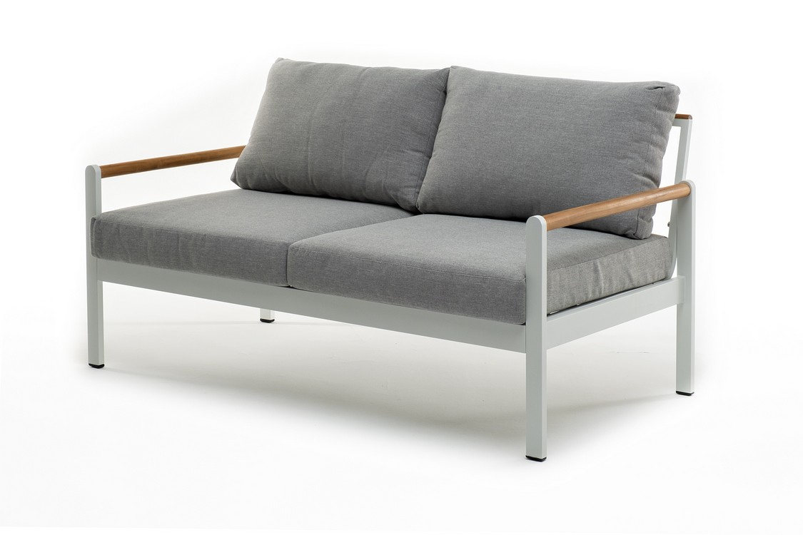 Дополняют конструкцию элементы из массива тика. Мягкие элементы мебели выполнены из водоотталкивающей ткани Олефин.