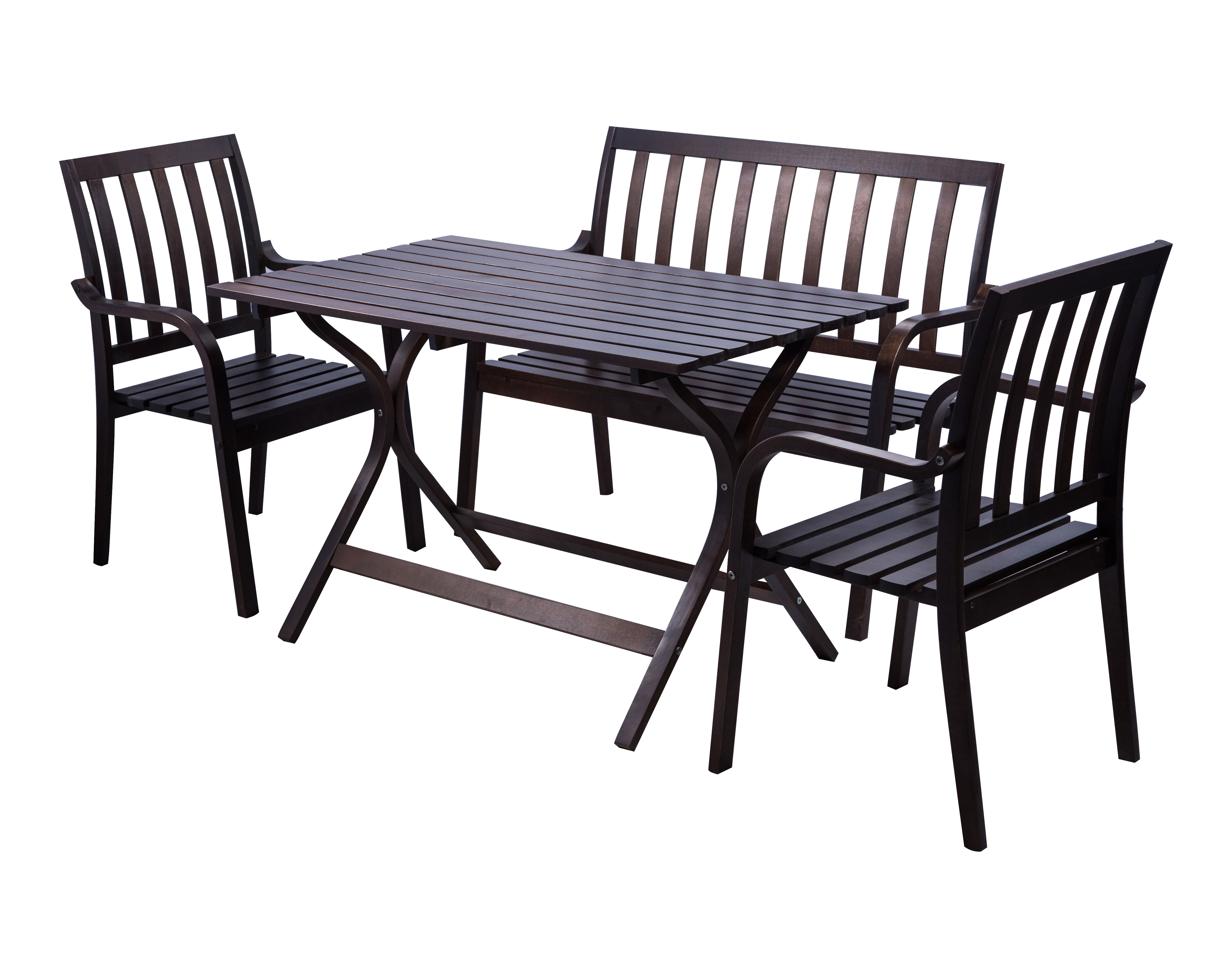 Деревянное кресло для дачного отдыха Берн. Изготовлено из массива березы в цвете Дуб темный. Спинка оформлена гнутыми вертикальными планками. Имеются подлокотники. Вместе со столом и диваном Берн составляют полноценный комплект для отдыха. Изделие не предназначено для использования на улице и во влажных помещениях без обработки влагозащитными составами.Характеристики