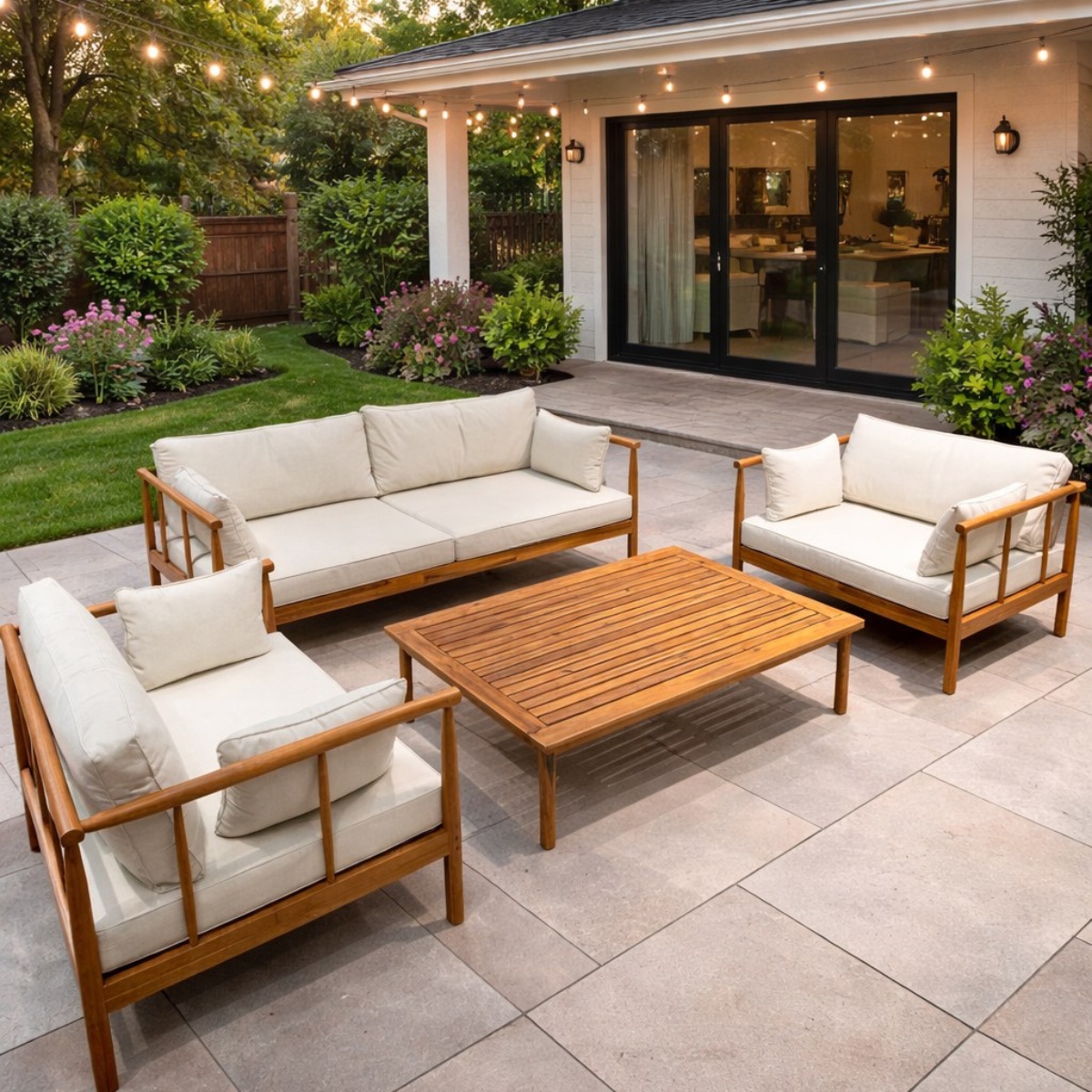 Комплектация и габариты: Диван - 195x91x65 см Стол - 140x89x35 см Кресло (2 шт.) - 105х91х65 см Материалы: Материал кресла - Акация Материал чехла на подушки - Olefin (водоотталкивающая ткань) Материал наполнителя подушек - пенополеуретан/ холлофайбер Цвет каркаса - акация Цвет подушек - бежевый Дополнительная информация: Максимальная нагрузка - 150 кг Чехлы съемные - да Температурный режим - от -50॰C до +50॰C Держатели и крепления подушек зависят от поставки и не являются неотъемлемой частью комплекта Гарантия и эксплуатация: Гарантийный срок - 1 год Эксплуатационный срок - 10 лет Страна производитель - ВьетнамХарактеристики