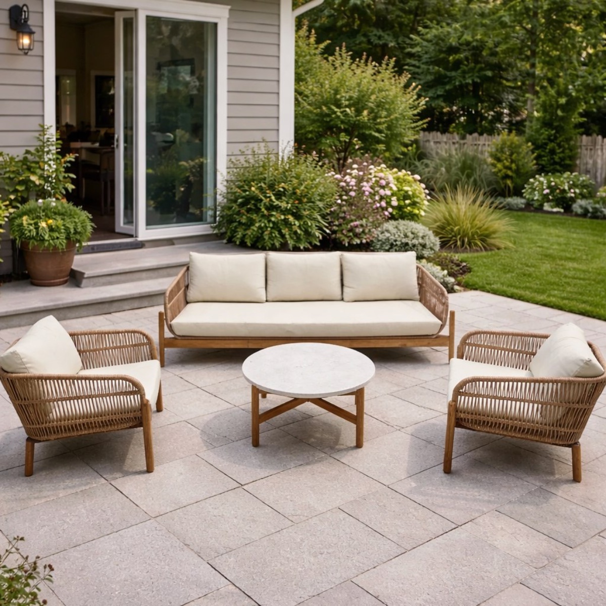 Комплектация и габариты: Диван - 230х80х63 см Стол - 80x80x37 см Кресло (2 шт.) - 80х80х63 см Материалы: Материал кресла - Акация Материал обивки - роуп(уличная веревка) Материал чехла на подушки - Olefin (водоотталкивающая ткань) Материал наполнителя подушек - пенополеуретан/ холлофайбер Цвет каркаса - акация Цвет подушек - бежевый Дополнительная информация: Максимальная нагрузка - 150 кг Чехлы съемные - да Температурный режим - от -50॰C до +50॰C Держатели и крепления подушек зависят от поставки и не являются неотъемлемой частью комплекта Гарантия и эксплуатация: Гарантийный срок - 1 год Эксплуатационный срок - 10 лет Страна производитель - ВьетнамХарактеристики