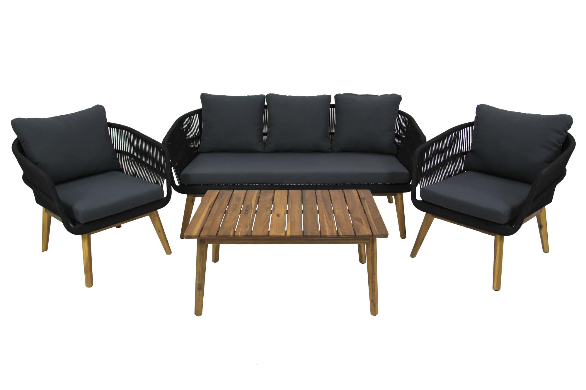 Набор мебели Garden Story Камелия 1 уп. (стол+2кресла+диван, веревки черные, подушки серые)