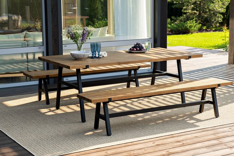 Обеденная группа из алюминия Joygarden АЛЬТО со скамьями, темно-серый графит