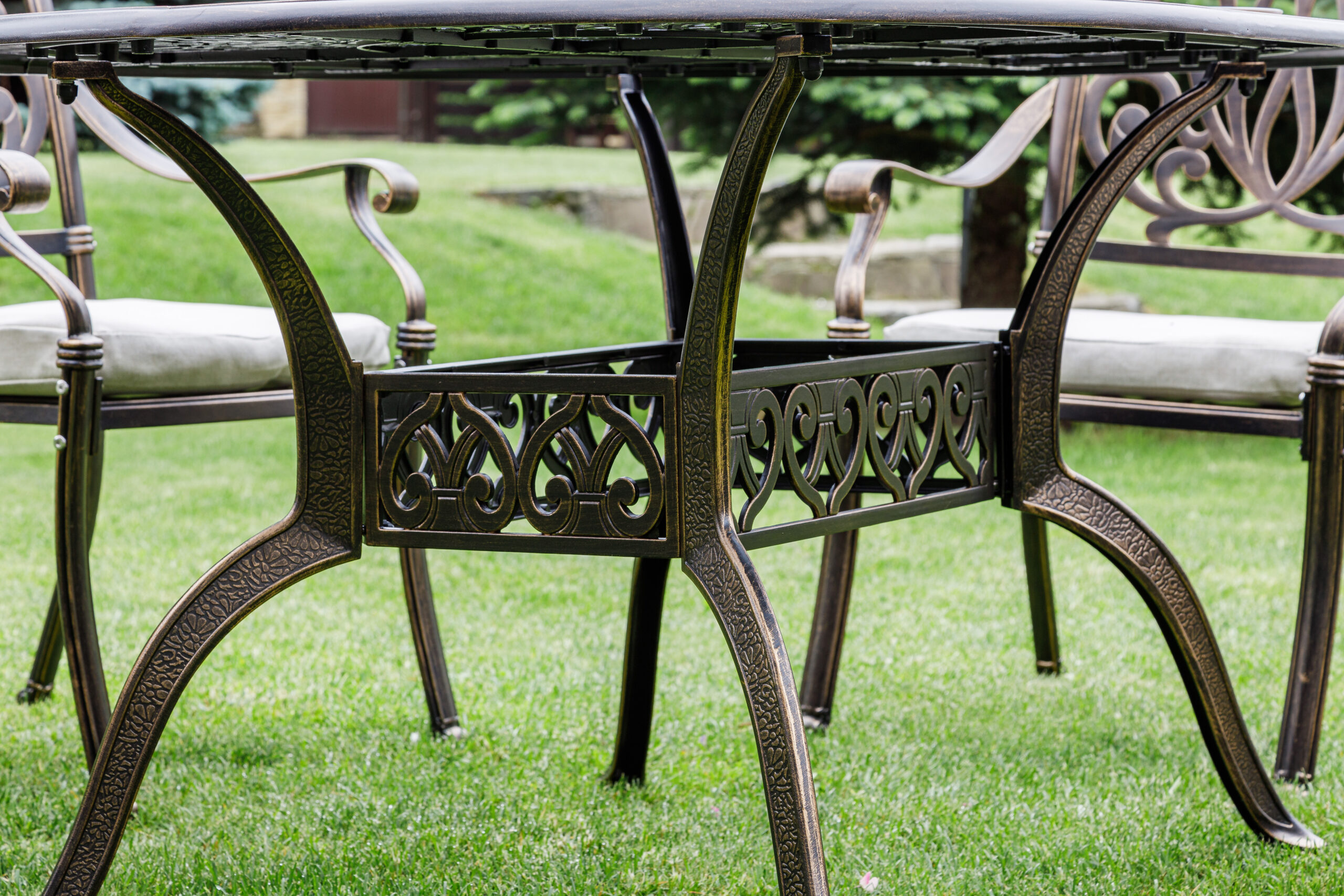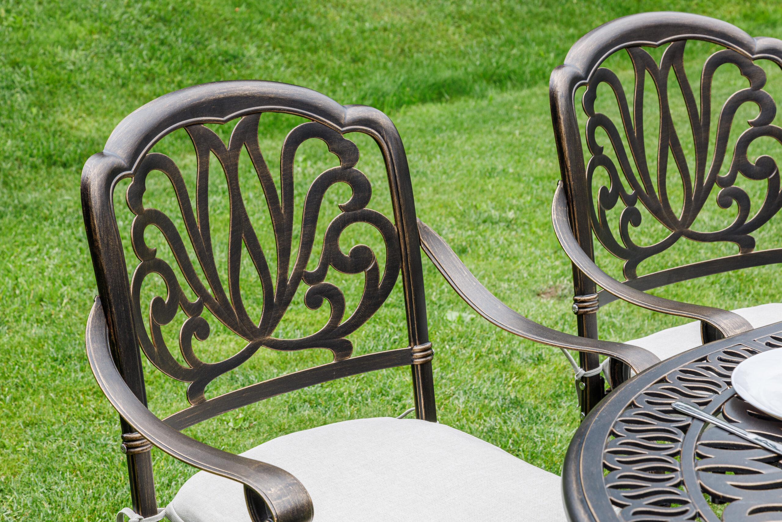 Комплектация и габариты: Кресло (6 шт) - 68х65х91 см Стол: Диаметр - 150 см Высота - 72 см Материалы: Материал каркаса – литой алюминий Материал столешницы – алюминий Материал чехла на подушки - олефин (водоотталкивающая ткань) Материал наполнителя подушек для сидения - поролон Цвет комплекта - бронзовый Цвет подушек – бежевый Дополнительная информация: Количество посадочных мест – 6 человек Максимальная нагрузка на посадочное место - 150 кг Чехлы съемные – да Накладки на ножки - да (пластиковые) Держатели и крепления подушек зависят от поставки и не являются неотъемлемой частью комплекта Гарантийный срок - 1 год Эксплуатационный срок - 10 лет Страна производитель - КитайХарактеристики