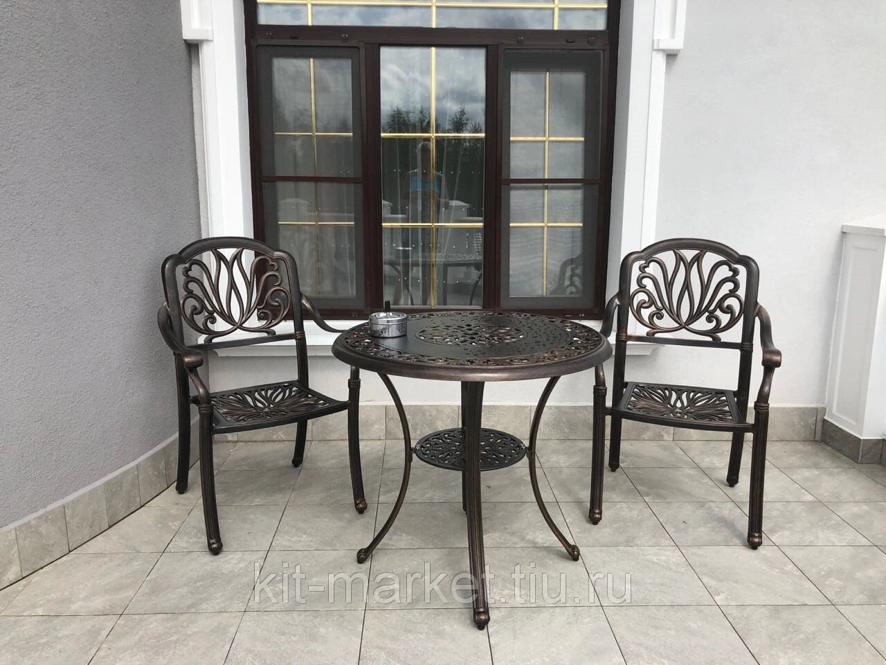 Комплект литой мебели из алюминия Geneva 2 рассчитан на две персоны и отлично смотрится на балконе, лоджии, веранде или в беседке. Подойдет такая металлическая мебель и для уличного кафе или ресторана, небольшой стол из алюминиевого сплава не будет занимать много места. Легкая мебель из литого алюминия не ржавеет, хорошо переносит погодные капризы и смену температур. Набор состоит из круглого стола и 2 кресел с подушками.