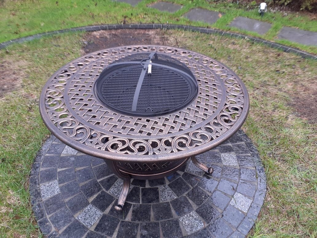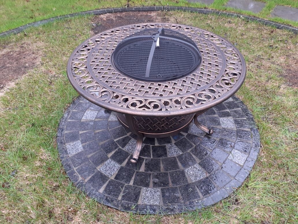 Размеры, вес: стол - Dia106*56 см (Dia жаровни 62 см)/ 28 кг, кресло - 60.5*64*93 см/ 7,3 кг.,