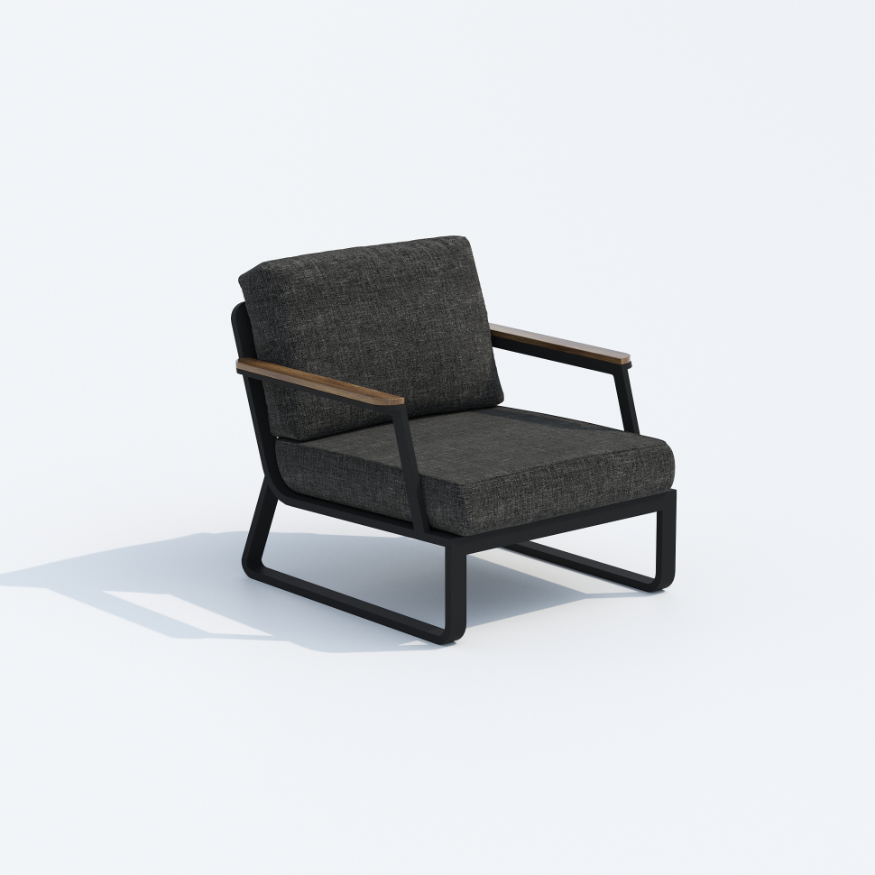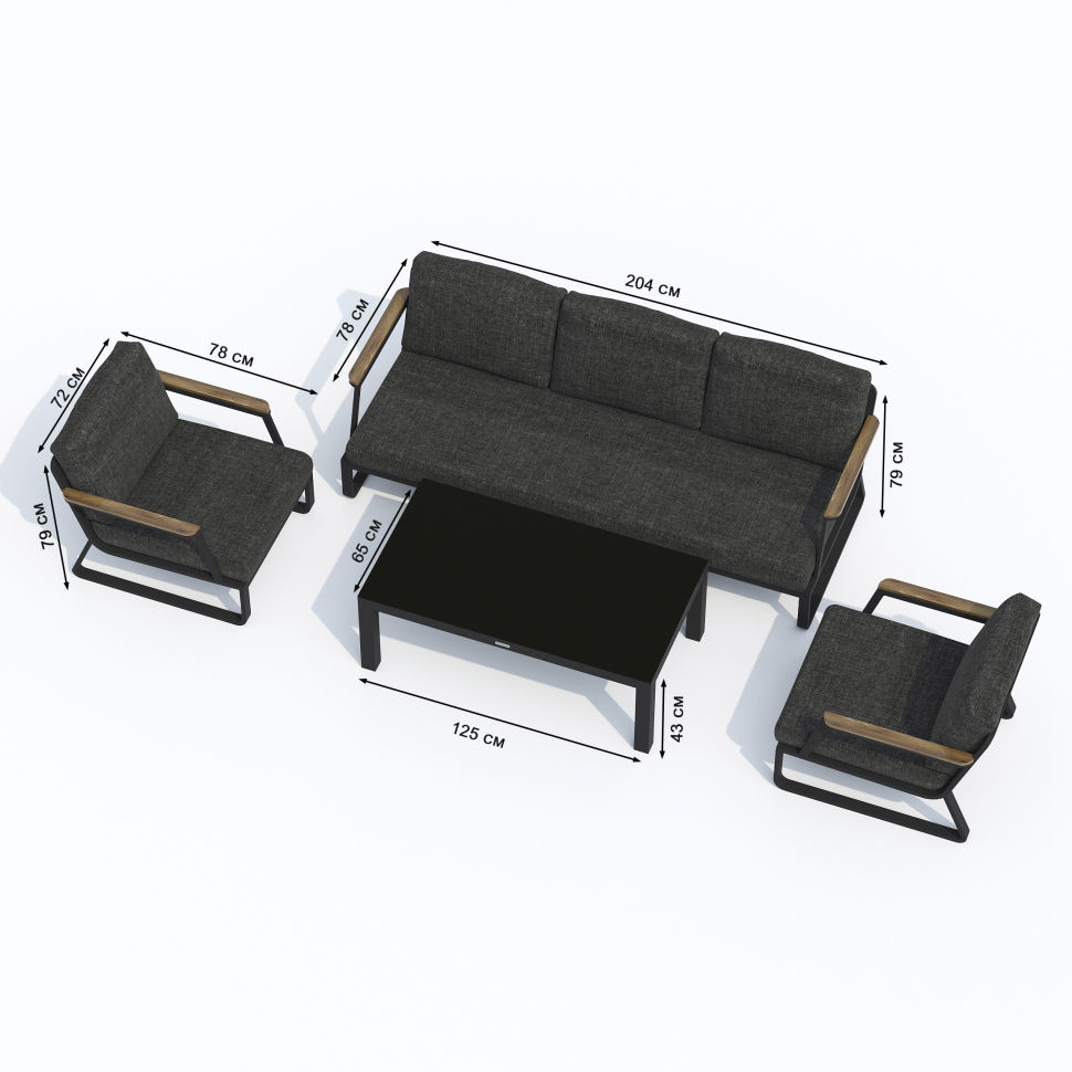 Цвет: каркас карбон (темно-серый) / подушки маренго (серый) / черное глянцевое стекло / подлокотники из тика