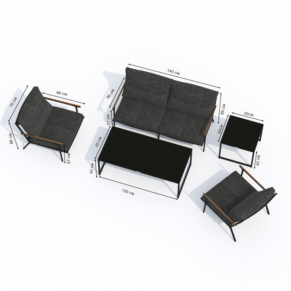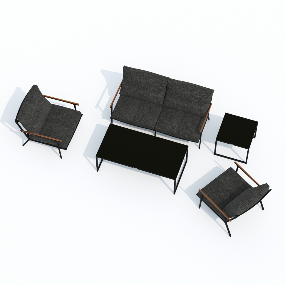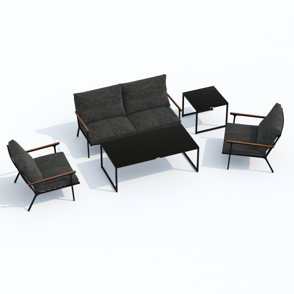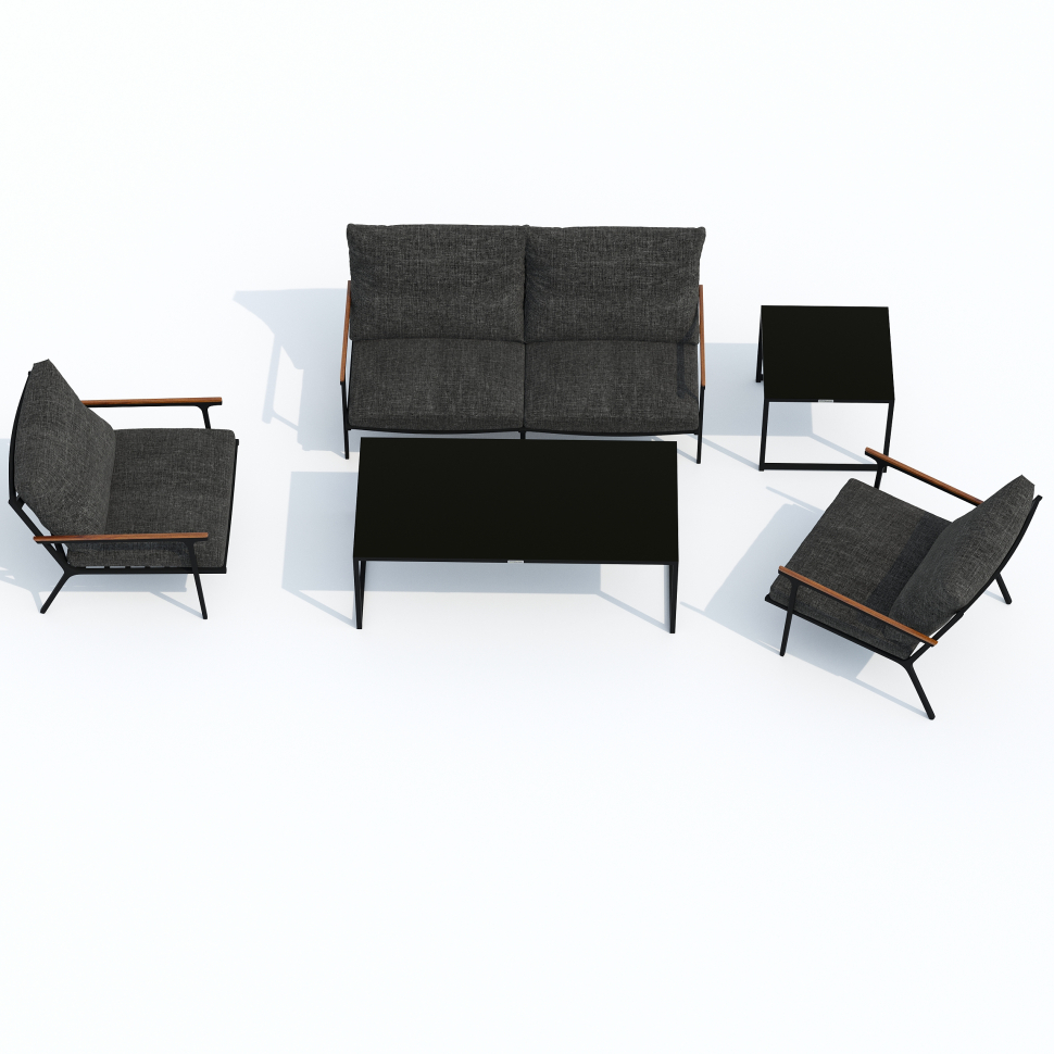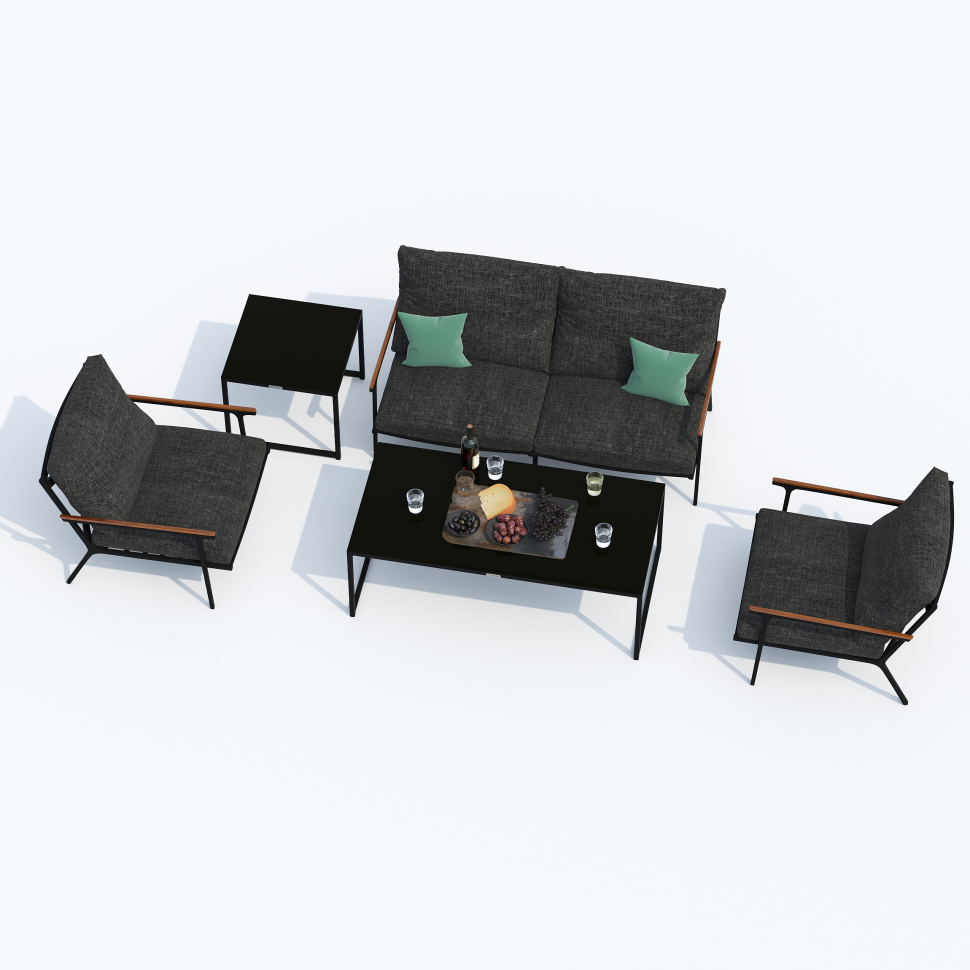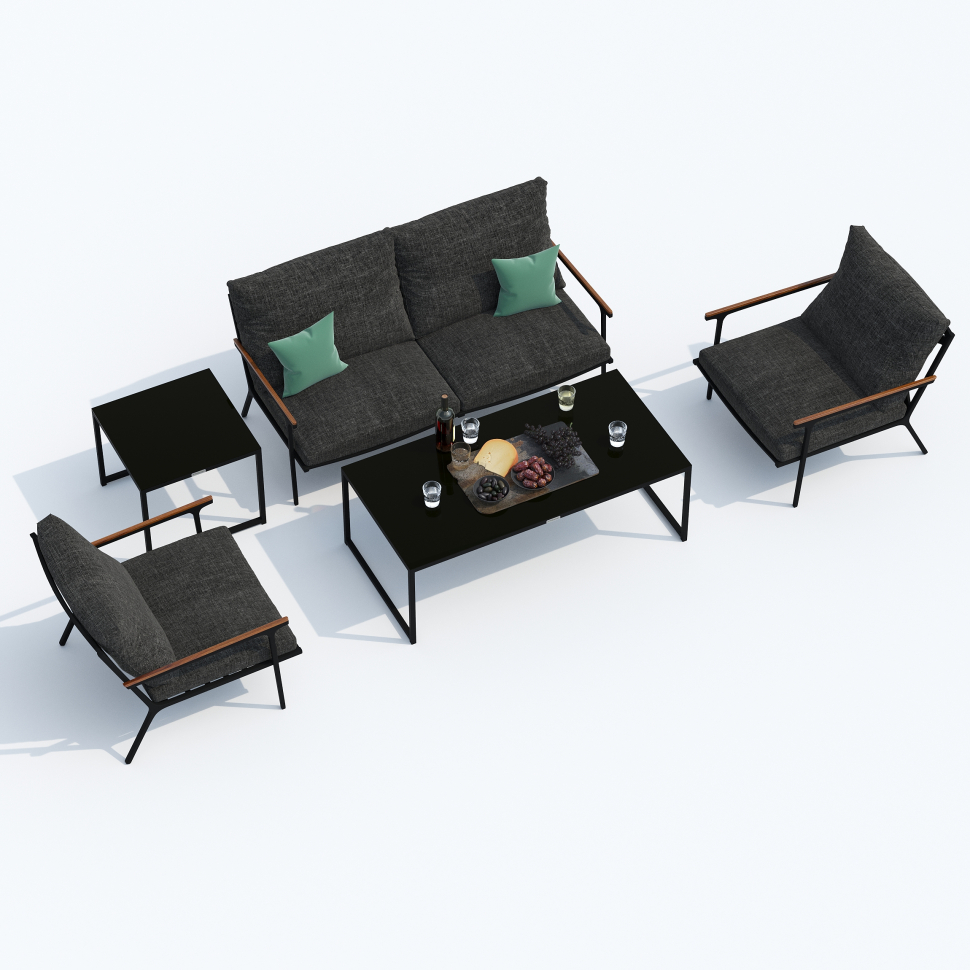 Мягкий двухместный диван, большие кресла и два журнальных столика со столешницей из чёрного глянцевого стекла - создать поистине уютное пространство для отдыха легко. Минимализм и сдержанная цветовая гамма, которую можно дополнить яркими акцентами в виде различных предметов декора. Чехлы цвета маренго идеально сочетаются с темно-серым каркасом. Они не выгорят на солнце и выдержат любые капризы погоды. Благодаря вшитой молнии их легко снять и почистить, если на них есть видимые загрязнения.