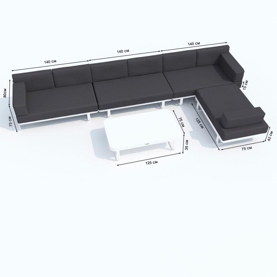 Цвет: каркас белый / подушки антрацит / столешница белая глянцевая