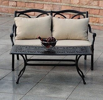 Небольшой набор металлической мебели для отдыха Venice 2 из литого алюминия рассчитан на две персоны и будет стильно смотреться на садовом участке, веранде или террасе. Комплект состоит из дивана из на 2 персоны и литого журнального стола. Подушки в комплекте. Реальные фото 2 и 3.