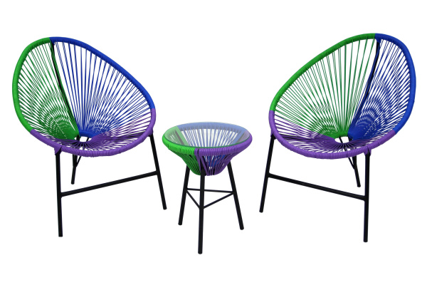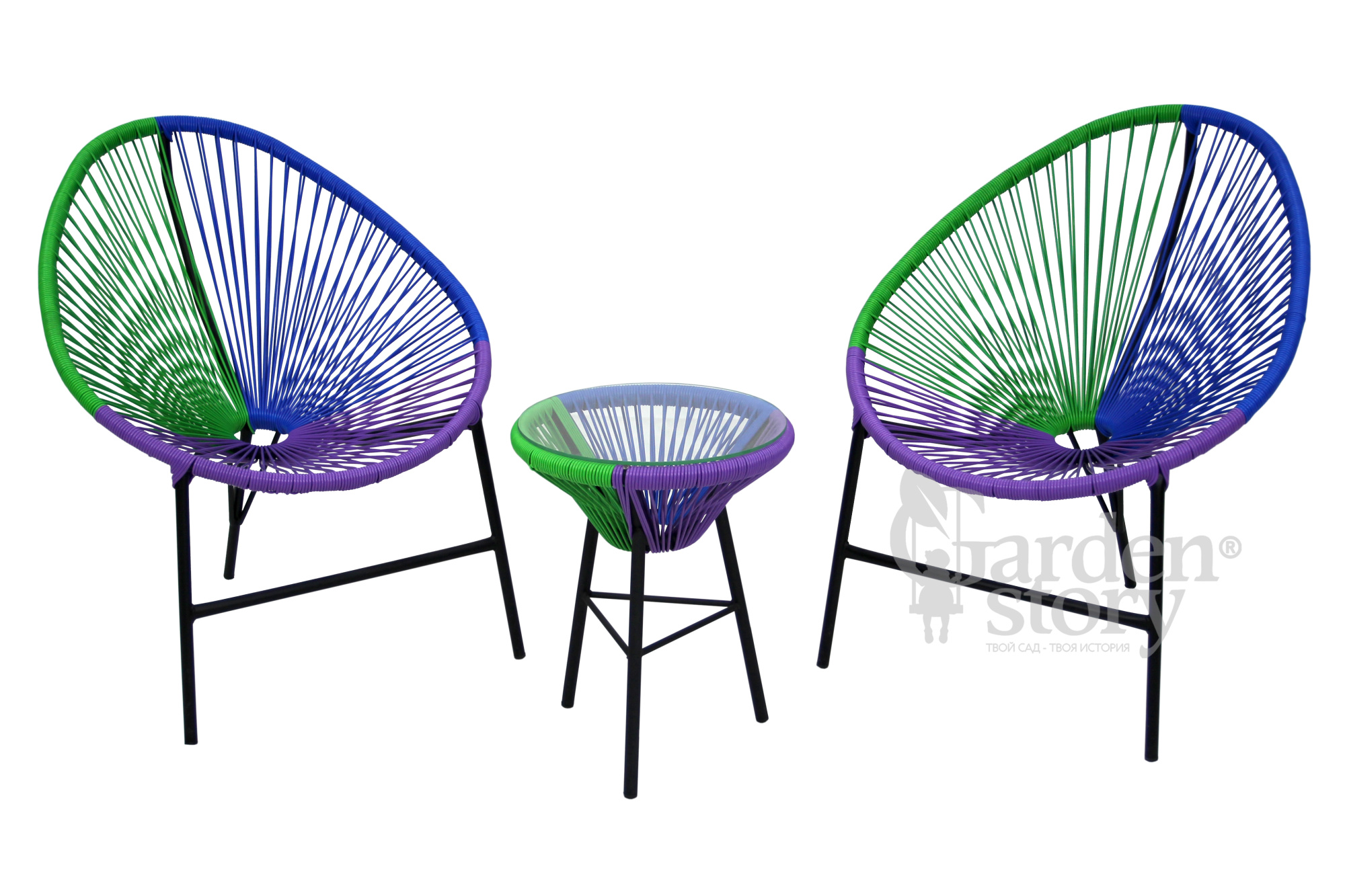 Набор мебели Garden Story Акапулько (2 кресла+стол Ø41см, каркас черный, сиденье син.,фиолет.,зелен.)