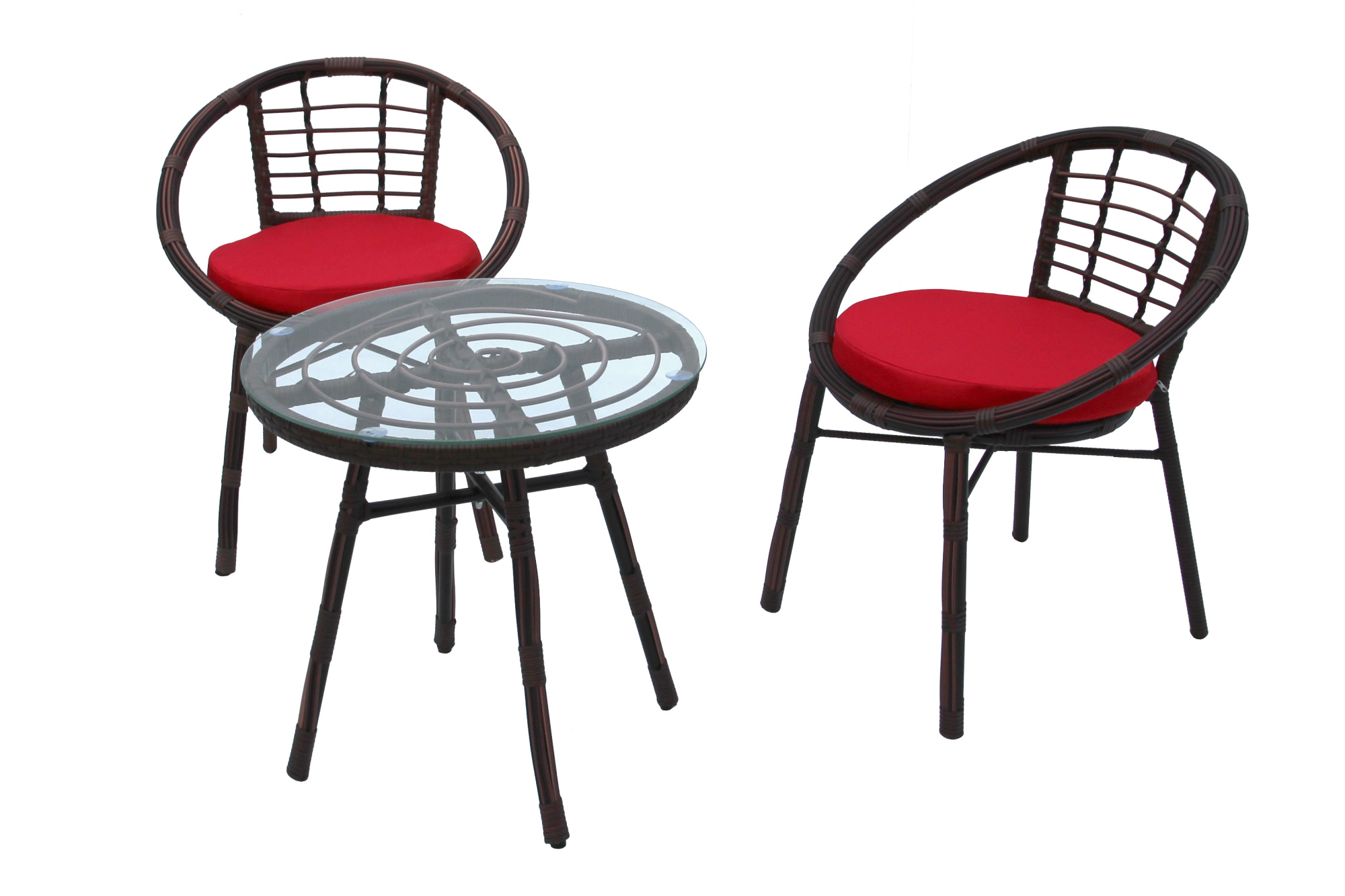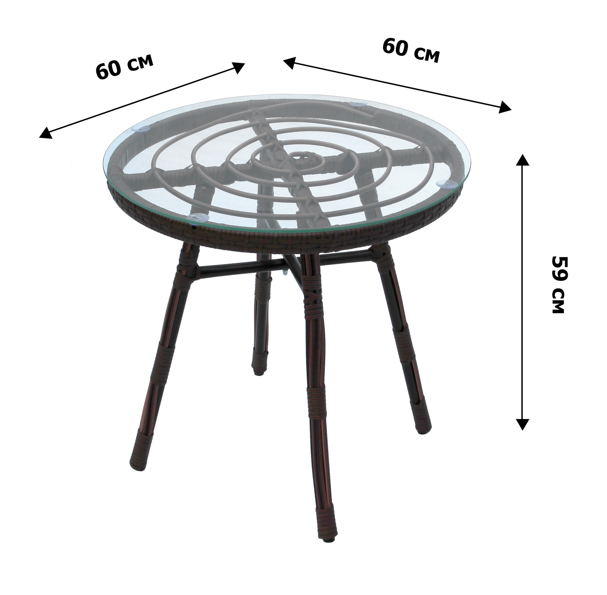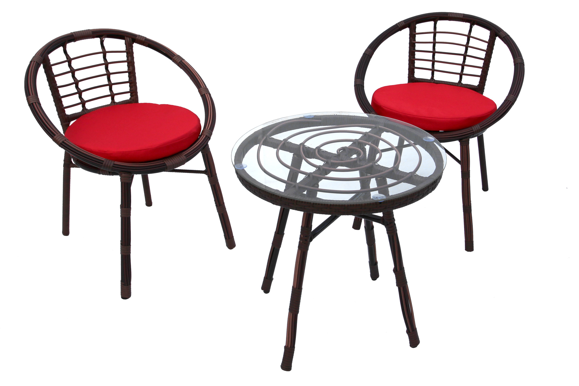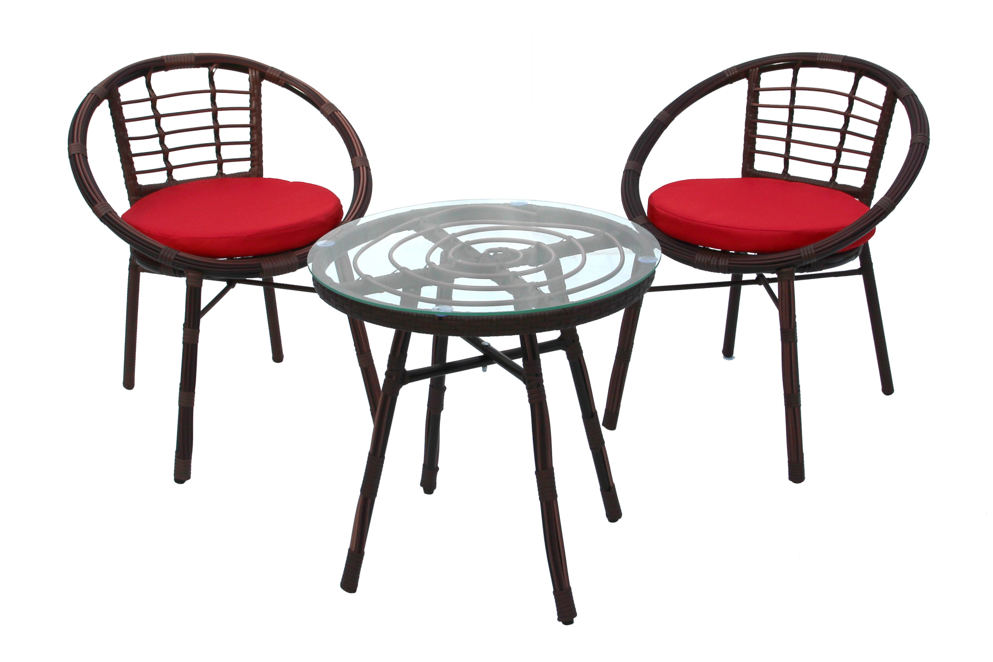 Габариты элементов (Ш/ГхДхВ) : стол: 60х60х59 кресло: 64х60х77 Цвет каркаса : коричневый Материал каркаса : сталь Цвет чехла мягкого элемента/матраса : красный Узор ткани : без рисунка Материал чехла мягкого элемента : полиэстер+хлопок Толщина мягкого элемента : 50 Цвет поверхности : коричневый Материал поверхности : искусственный ротанг, стекло Комплектация : стол, 2 кресла Страна производства : РОССИЯ Дополнительно : Кресло- сидение d44 см, высота от пола до сиденья- 52 см.Характеристики