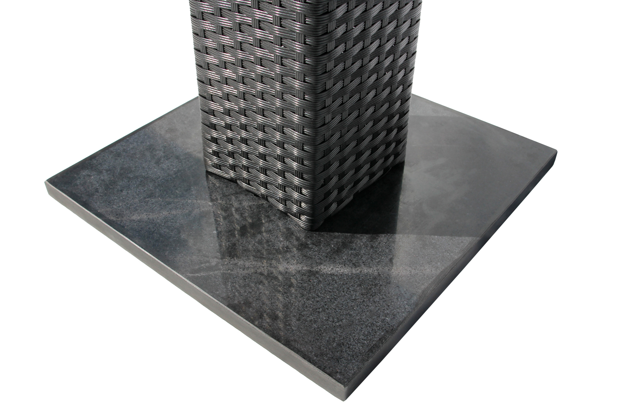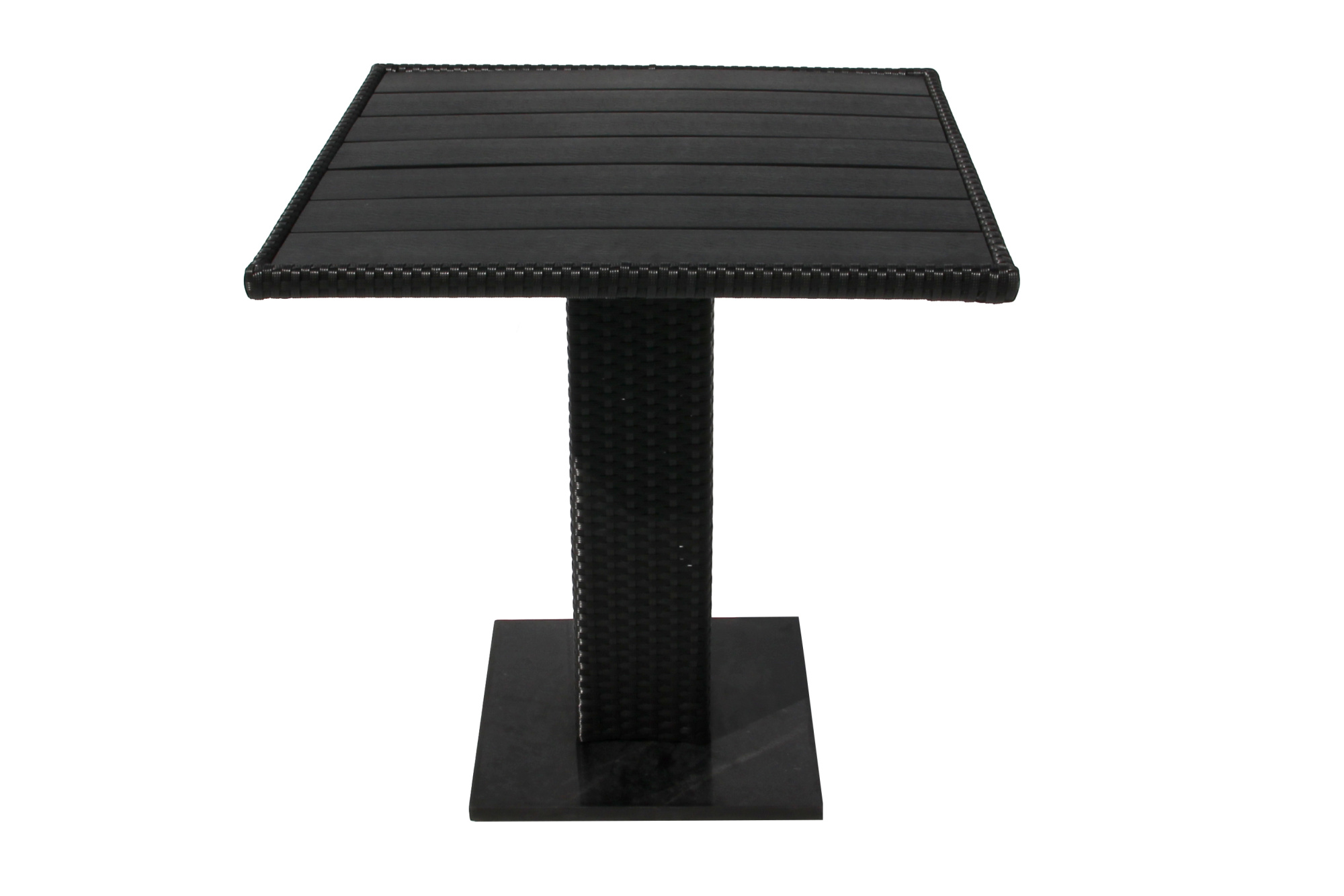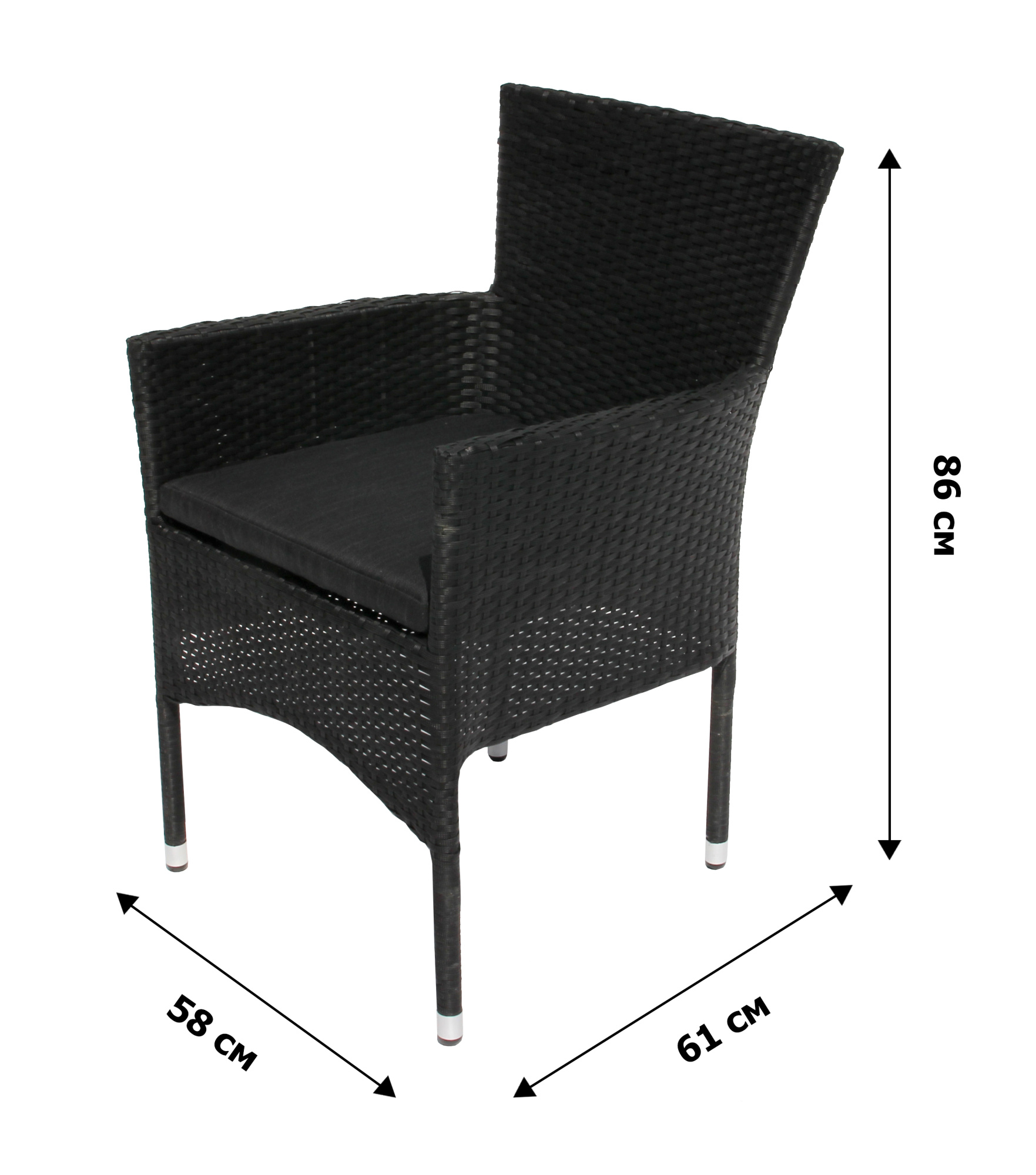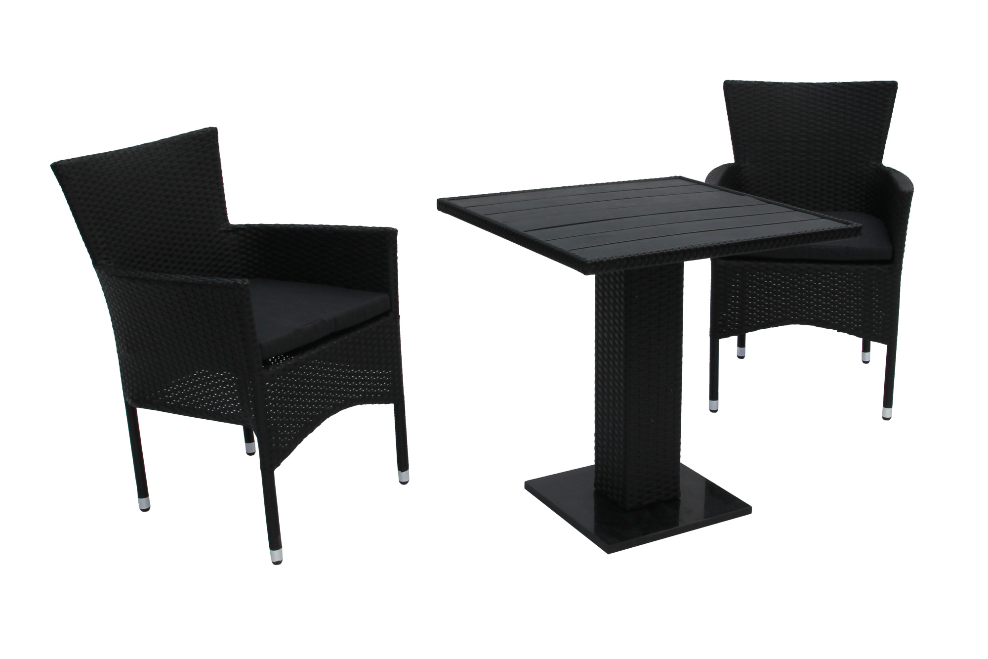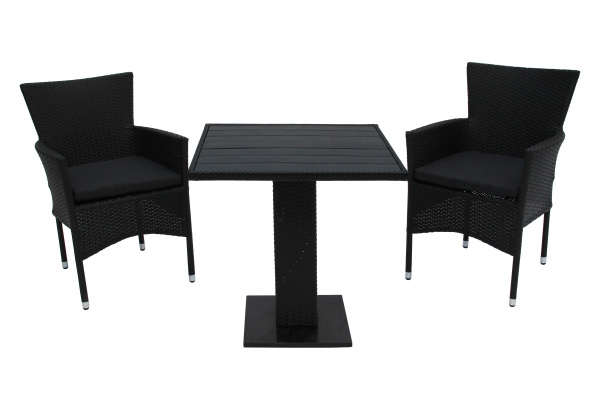 Габариты элементов (Ш/ГхДхВ) : Стол: 70х70х73 2 стула, размер 1 стула:: 58х61х86 Цвет каркаса : черный Материал каркаса : сталь Цвет чехла мягкого элемента/матраса : серый Узор ткани : без рисунка Материал чехла мягкого элемента : полиэстр Цвет поверхности : черный Материал поверхности : искусственный ротанг, сталь Комплектация : стол, 2 кресла Использование на открытом воздухе : да Страна производства : КИТАЙ Дополнительно : столешница - поливудХарактеристики