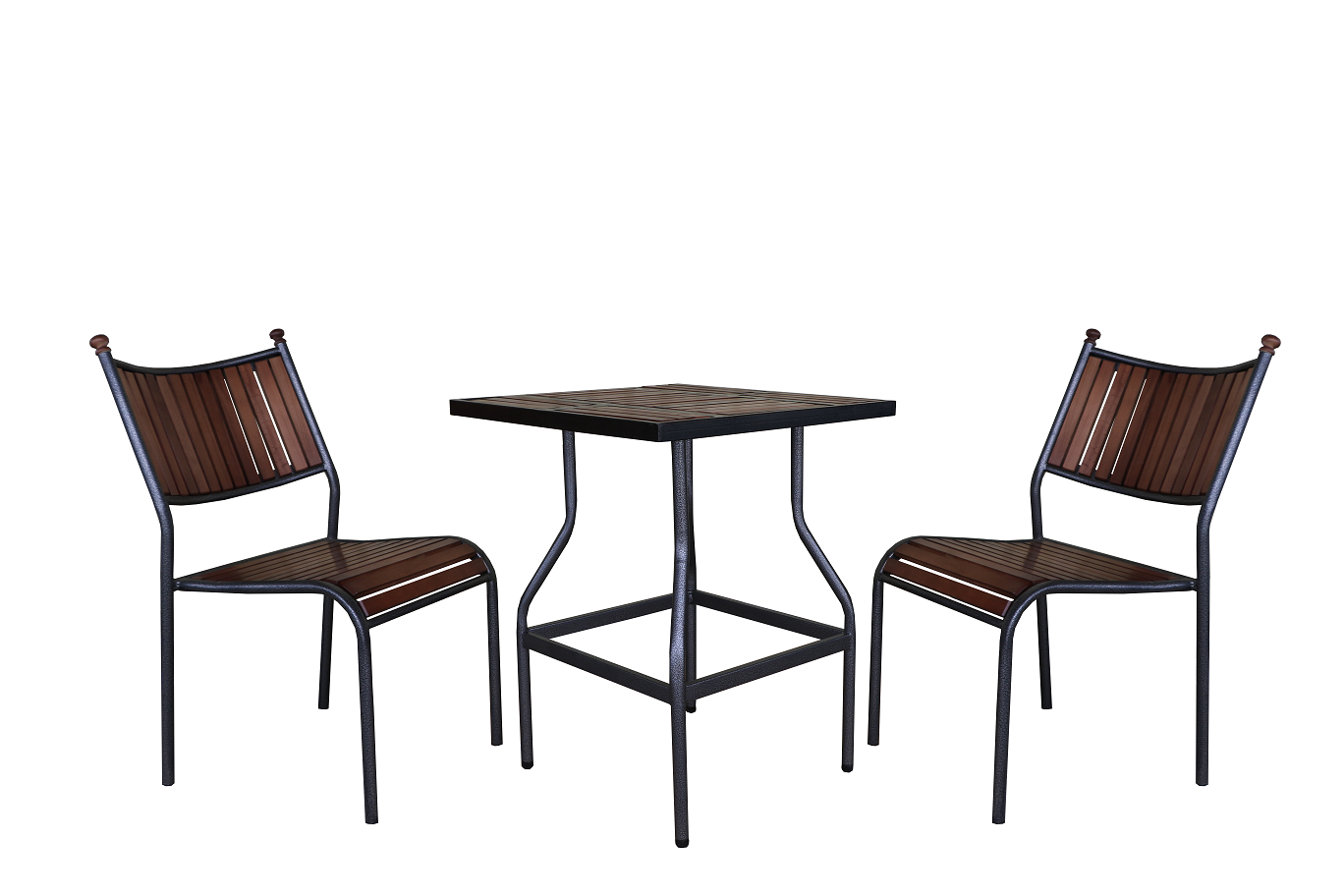 Габариты элементов (Ш/ГхДхВ) : стол: 60х60х73 кресло: 60х53х95 Цвет каркаса : серый Материал каркаса : сталь Цвет поверхности : серый, коричневый Материал поверхности : дерево Комплектация : квадратный стол (2уп.) 2 кресла Использование на открытом воздухе : нет Страна производства : РОССИЯ Дополнительно : *Характеристики