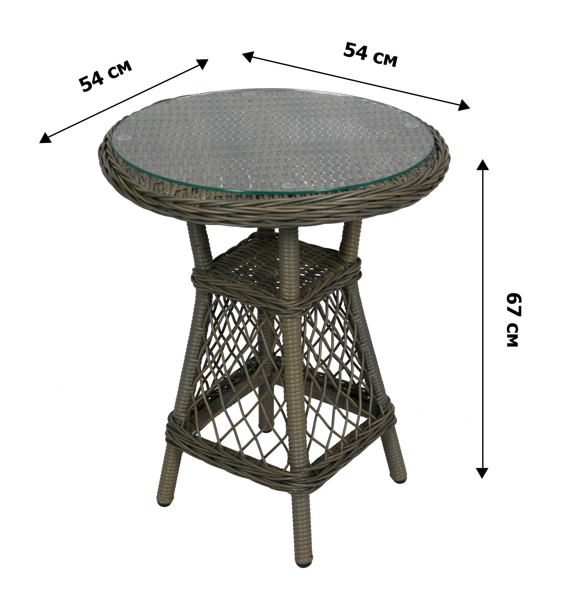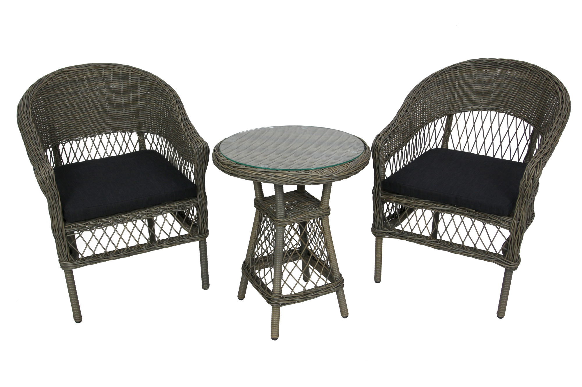 Габариты элементов (Ш/ГхДхВ) : 2 кресла: 65х67х85 1 стол: 54х54х67 Цвет каркаса : светло-коричневый Материал каркаса : алюминий Цвет чехла мягкого элемента/матраса : серый Узор ткани : без рисунка Материал чехла мягкого элемента : водоотталкивающая ткань Толщина мягкого элемента : 5 Цвет поверхности : светло-коричневый Материал поверхности : ротанг искусственный Комплектация : стол, 2 кресла Использование на открытом воздухе : да Страна производства : КИТАЙ Дополнительно : стекло закаленное, не тонированноеХарактеристики
