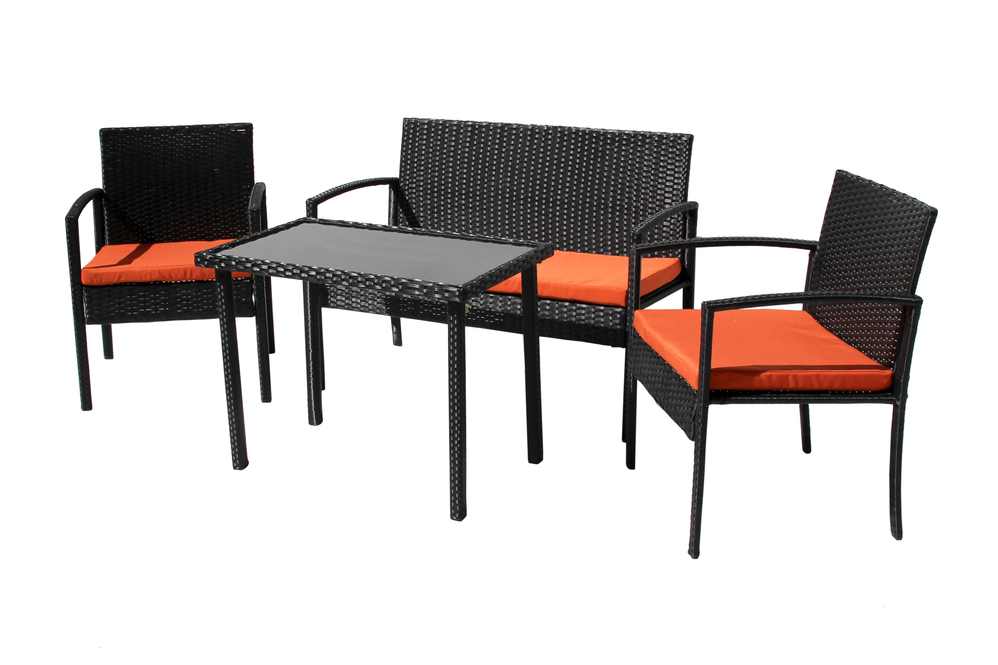 Набор мебели Garden Story Бостон NEW 1 уп. (стол+2кресла+диван ротанг черный, подушки оранжевые)