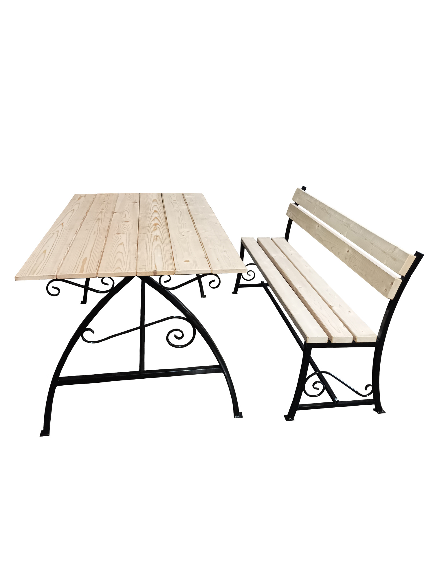 Габариты элементов (Ш/ГхДхВ) : стол 150х79х82 лавочка: 150х45х80 Цвет каркаса : черный Материал каркаса : сталь Цвет поверхности : натуральное дерево (Хвоя) Материал поверхности : дерево Хвоя Комплектация : стол, 2 лавочки Использование на открытом воздухе : да Страна производства : РОССИЯ Дополнительно : Деревянные элементы не окрашены, доска строганная Толщина металла 1.2 Толщина доски 3,5. Глубина сиденья 34 см, от пола до сиденья 45 см. Нагрузка на стол - 80кг.Характеристики