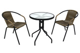 Габариты элементов (Ш/ГхДхВ) : стол: 60х60х70 кресло: 56х54х73 Цвет каркаса : черный Материал каркаса : сталь Цвет поверхности : желто-черный Материал поверхности : искусственный ротанг, стекло Комплектация : стол, 2 кресла Использование на открытом воздухе : да Страна производства : КИТАЙХарактеристики