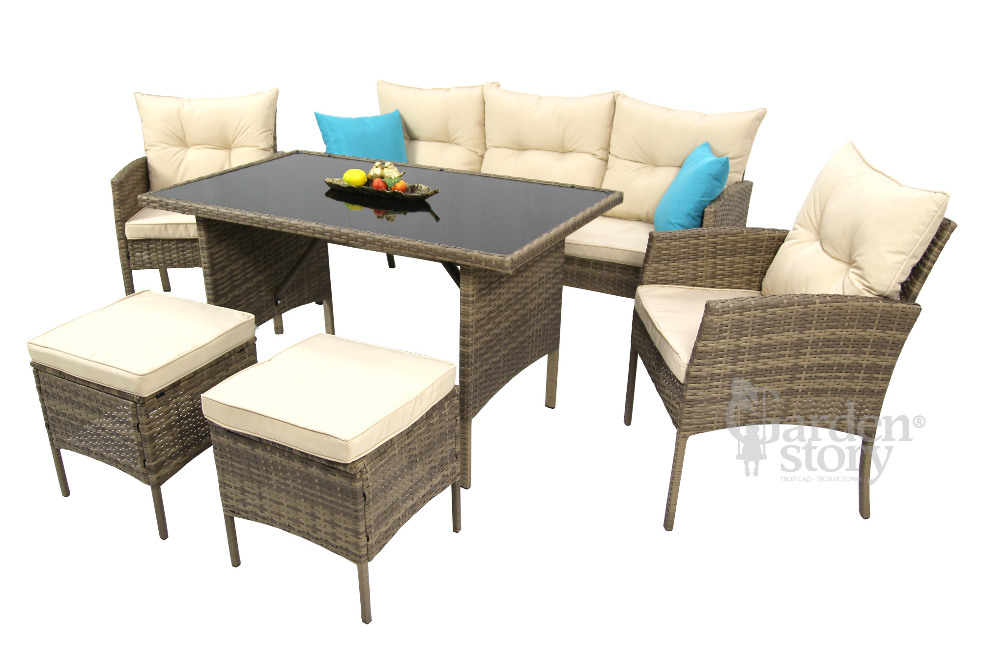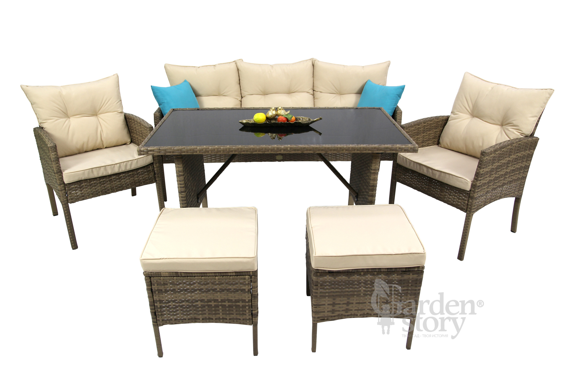 Набор мебели Garden Story Милена 2 уп. (стол+диван+2 Стул Garden Storyа+2 кресла ротанг кор., подушки бежевые+декоративные по