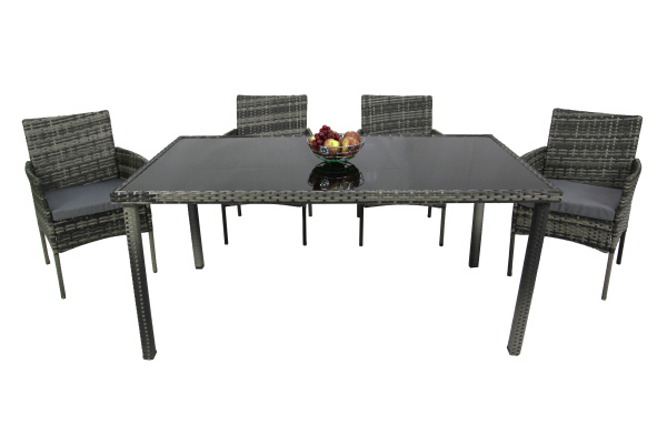 Набор мебели Garden Story Нестор 3 уп. (стол + 4 Стул Garden Storyа ротанг серый, подушки серые)