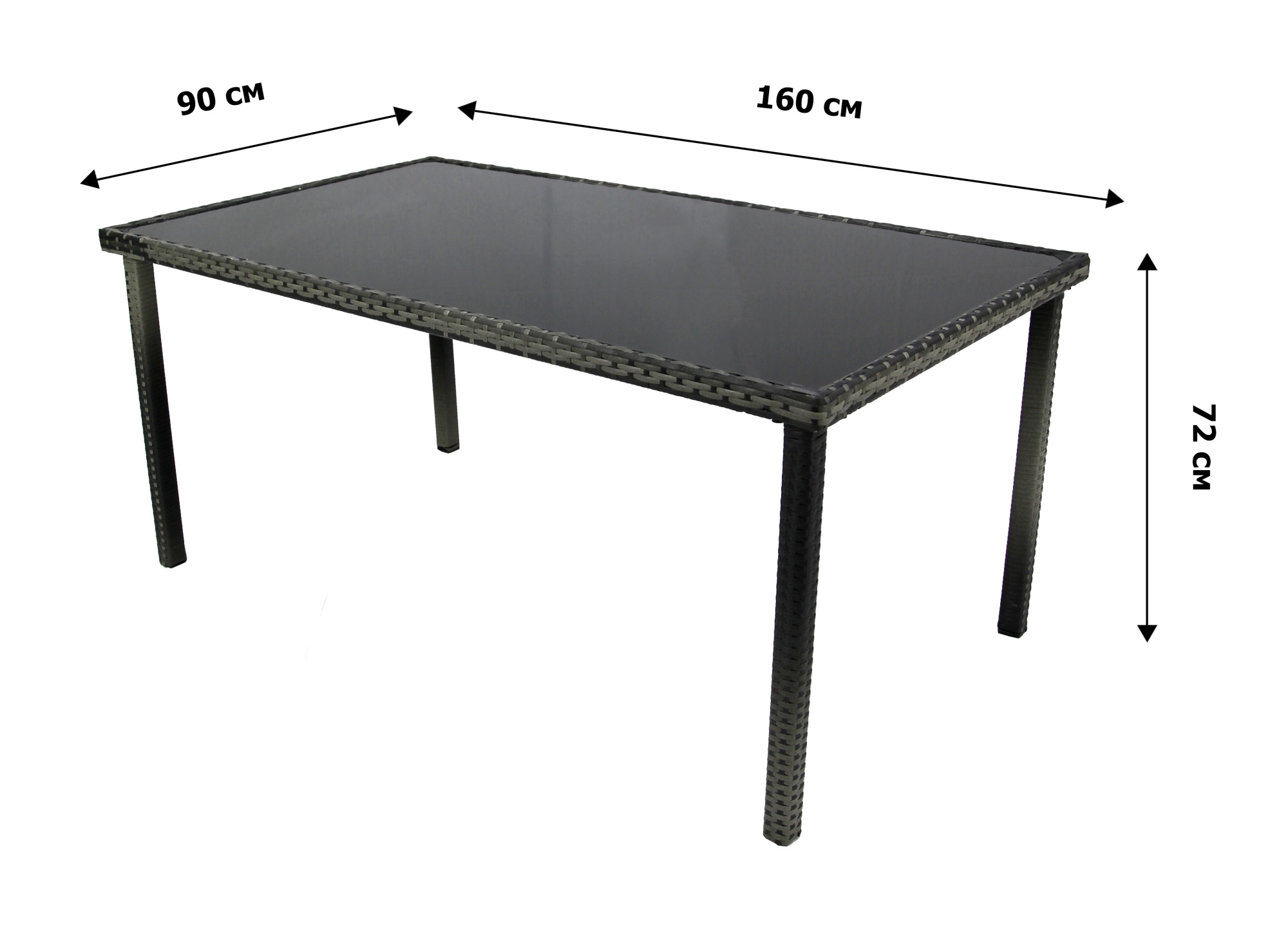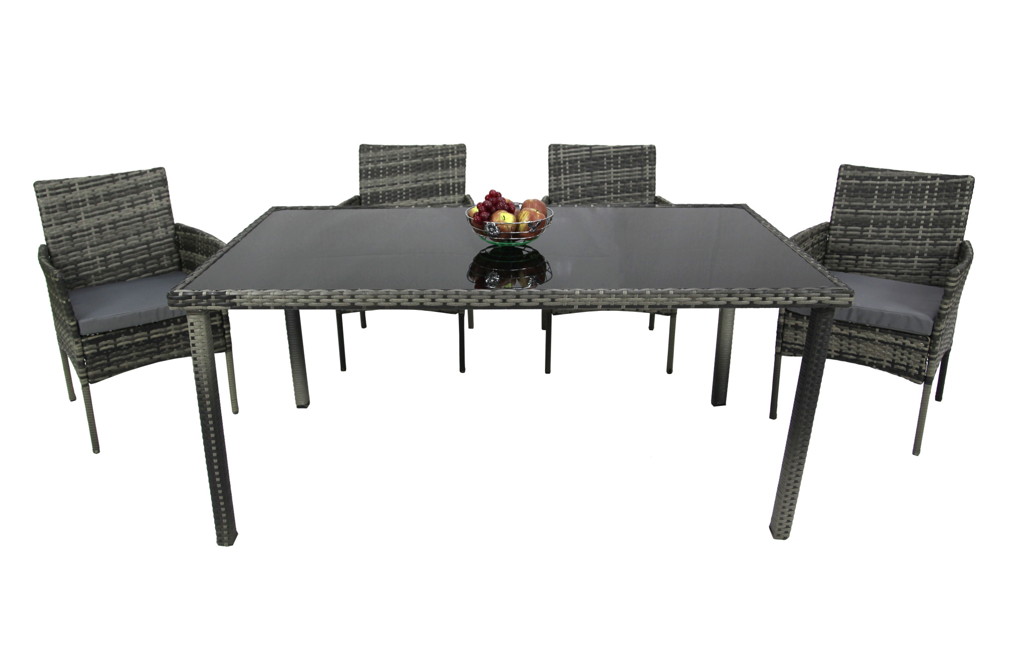 Габариты элементов (Ш/ГхДхВ) : стол 90х160х72 кресло 56х56х81 Цвет каркаса : серый Материал каркаса : сталь Цвет чехла мягкого элемента/матраса : серый Узор ткани : без рисунка Материал чехла мягкого элемента : водоотталкивающая ткань Цвет поверхности : серый Материал поверхности : искусственный ротанг, стекло Комплектация : стол+4 стула Использование на открытом воздухе : да Страна производства : КИТАЙ Дополнительно : стул,столХарактеристики