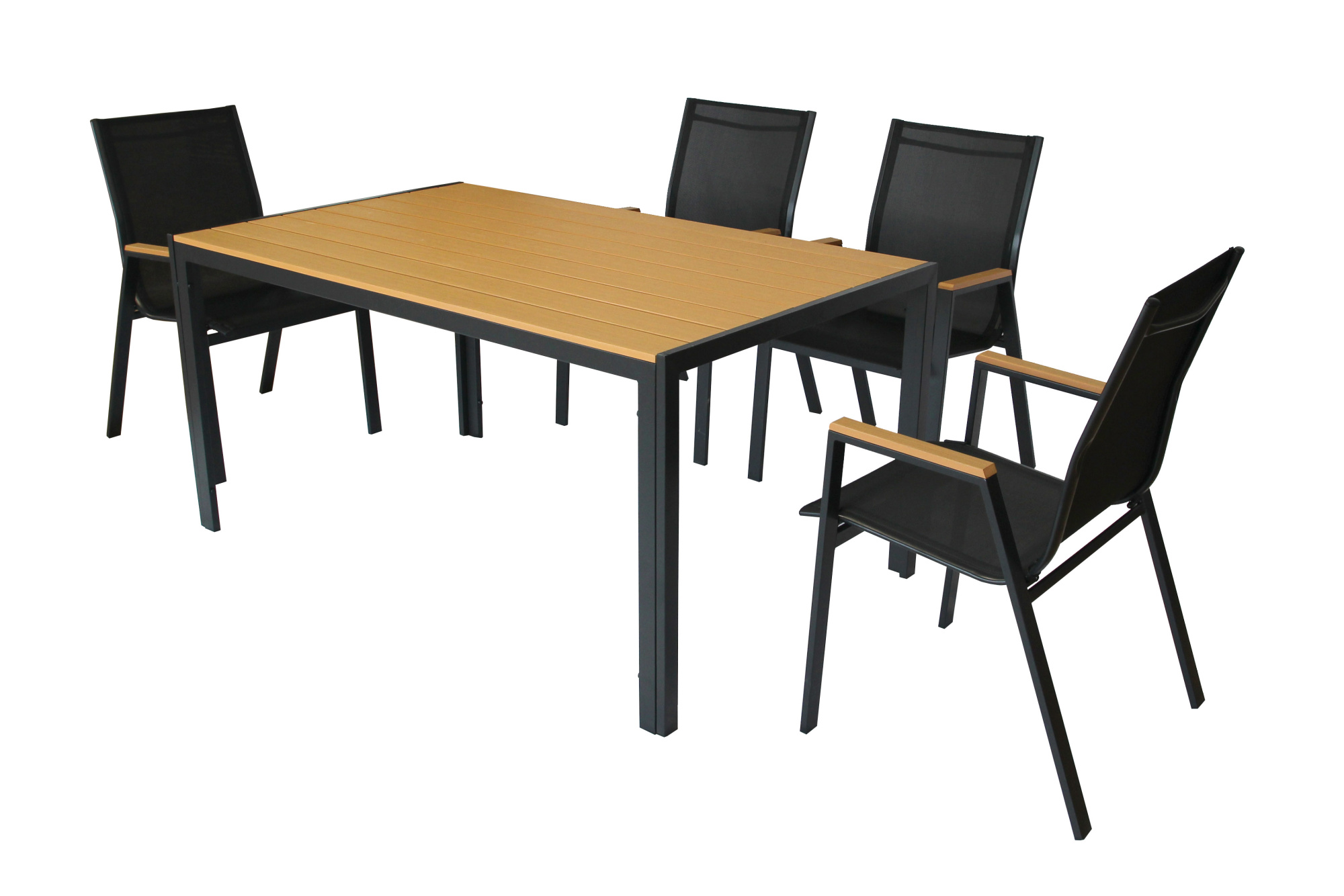 Набор мебели Garden Story Сан-Ремо NEW 5 уп(4 Стул Garden Storyа чер с подлокотниками +1 уп стол черн, столеш поливуд) (КК)