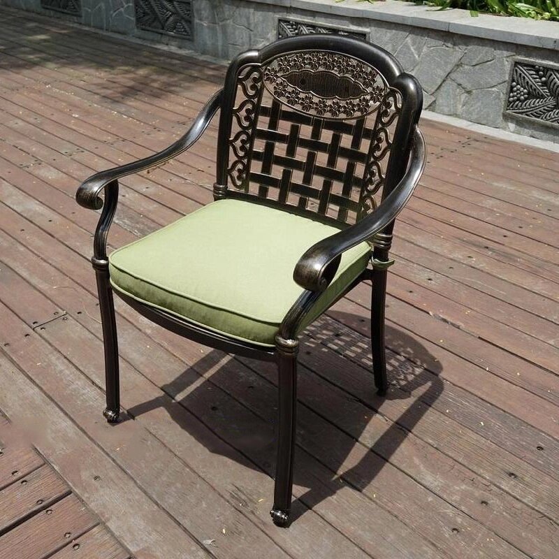 Комплект металлической мебели из литого алюминия Nice 6 с большим круглым столом рассчитан на компанию до 8 персон. Стол дополнен круглым вращающимся подносом диаметром 106 см. Литые кресла из алюминия комплектуются светло-бежевыми подушками.