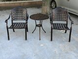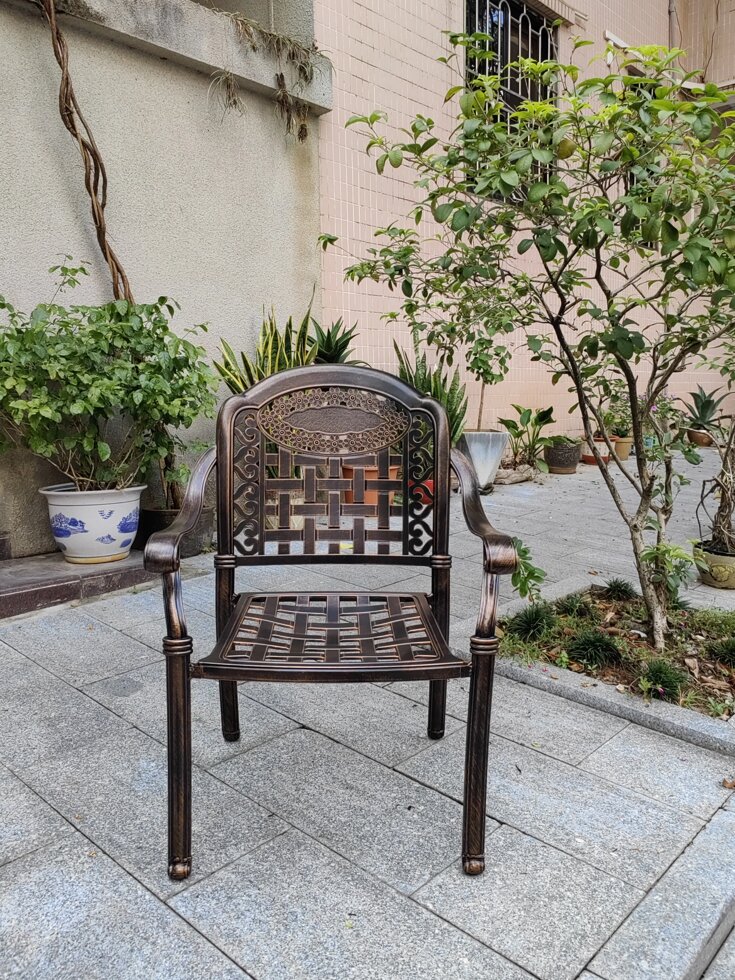 Небольшой комплект садовой мебели из литого алюминия Delhi 60 с кофейным столиком может использоваться как на улице, так и в доме, беседке или на террасе, В комплект садовой мебели из металла входит круглый стол диаметром 60 см и 2 разборных литых кресла из алюминия с бежевыми подушками (фото 5).