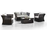 В комплект входит 4 предмета: Двухместный диван, размер: 1500х750х750 мм - 1 шт. Кресло, размер: 800х750х750 мм - 2 шт. Кофейный столик, размер: 1100х500х400 мм- 1 шт. Подушки включены в комплект поставки. - подушки на сиденье для кресел, размер 580х650х80 мм; - подушка на сиденье для дивана, размер: 1280х650х84 мм. Столик комплектуется стеклянной столешницей, размер: 1100х500х5 мм. Комплект выполен из искусственного ротанга, с помощью ручного плетения. Тип плетения: плоское. Каркас мебели: алюминий. Толщина подушек на сиденье - 80 мм. Кол-во декоративных подушек: 4 шт. Столешница из закаленного стекла, толщиной 5 мм. Обратите внимание! Фабрика Tagliamento оставляет за собой право вносить изменения в собственные изделия в любой момент, которые сочтет необходимыми в целях улучшения своих изделий на основании нововведений и требований рынка.Характеристики