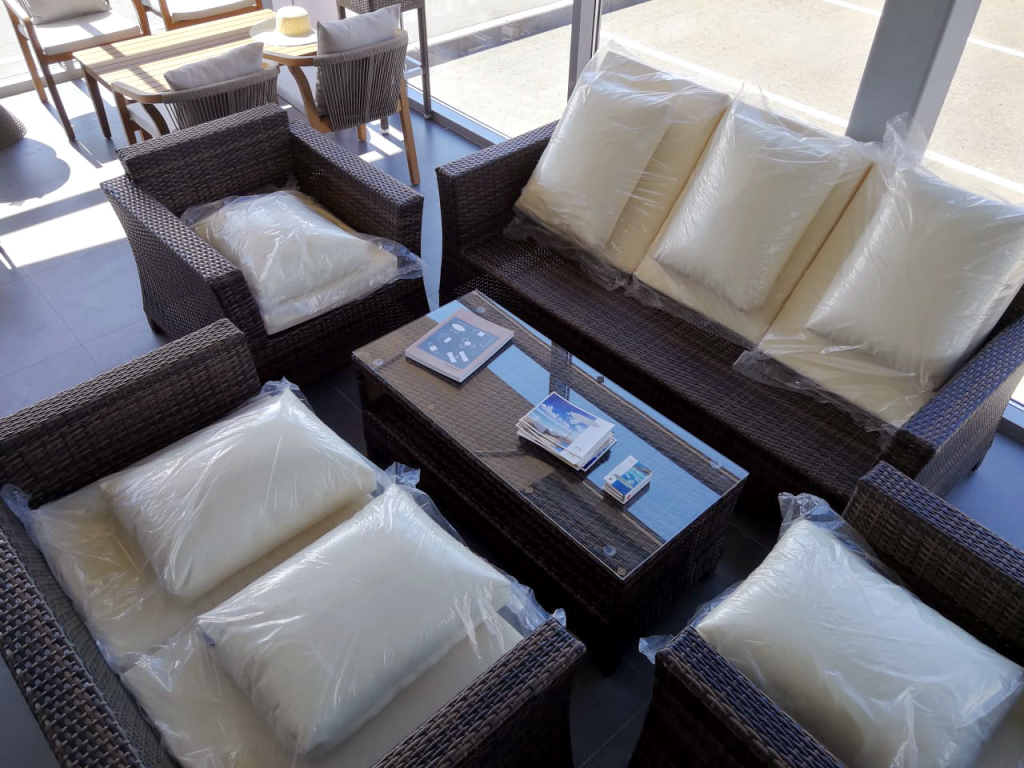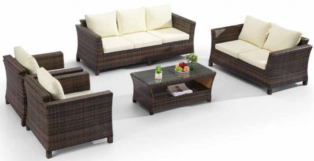 Комплект продается со скидкой т.к. есть небольшие дефекты-потертости на подлокотниках. Комплект мебели Fantasy не оставит равнодушным никого. Сочетание коричневого плетения ротанга и бежевых подушек придает этой мебели экзотический и уютный внешний вид. Особенности: Мебель выполнена на алюминиевом каркасе с порошковым покрытием, оплетенном искусственным ротангом. Обивка подушек выполнена из водоотталкивающей ткани (акрил). Столешница на кофейном столике выполнена из закаленного стекла. В комплект входит 5 предметов: 1. Двухместный диван, размер 1400х800х720 мм - 1 шт. 2. Трехместный диван, размер 1900х800х720 мм - 1 шт. 3. Кресло, размер 800х800х720 мм - 2 шт. 4. Кофейный столик, размер 1100х500х440 мм - 1 шт. Открыть инструкцию по уходу. Обратите внимание! Фабрика Tagliamento оставляет за собой право вносить изменения в собственные изделия в любой момент, которые сочтет необходимыми в целях улучшения своих изделий на основании нововведений и требований рынка.Характеристики